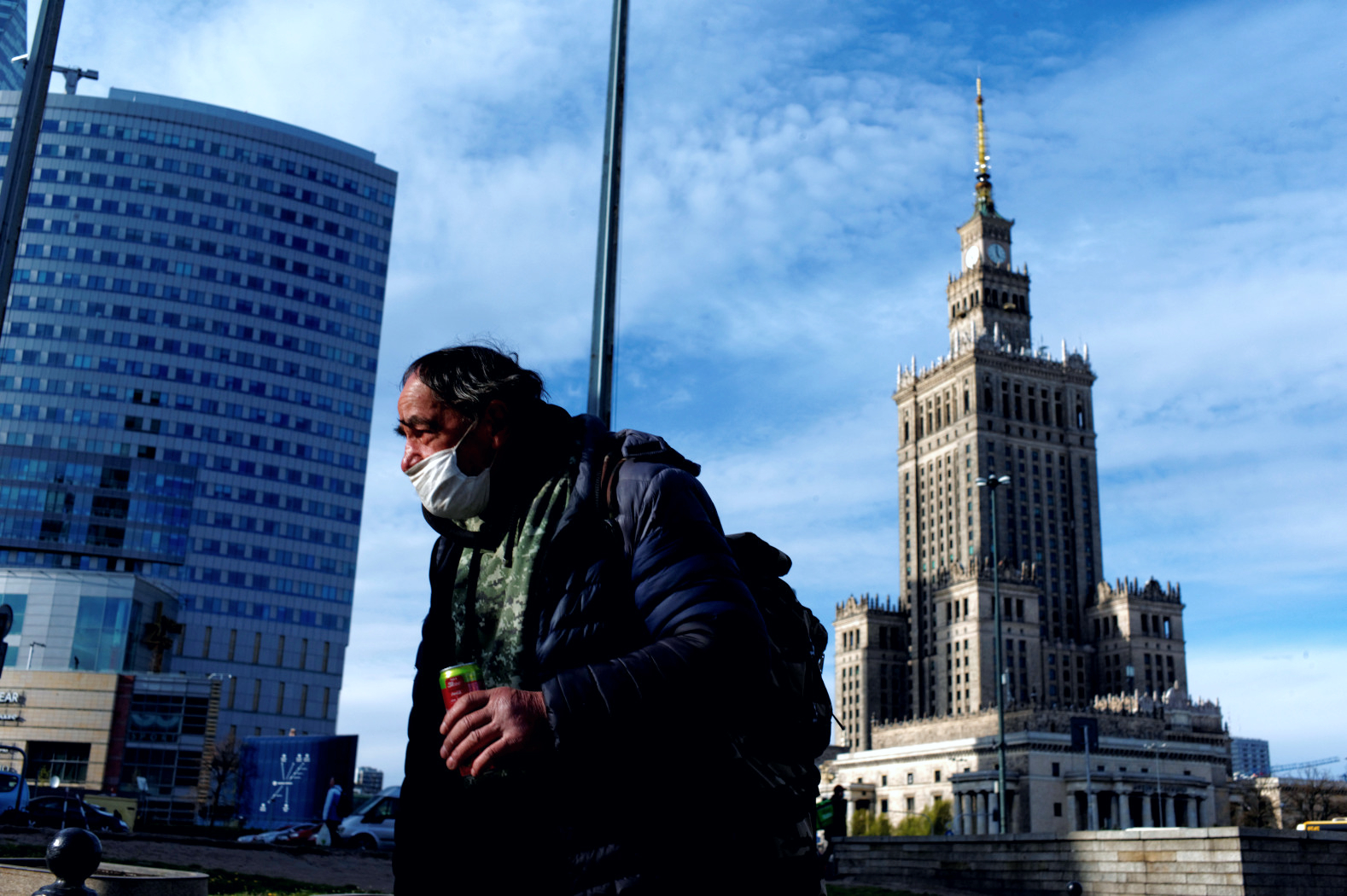 Tzw. kwiat Mokotowa prezentuje własne podejście do masek i zakazu zbierania się powyżej dwóch osób. Panowie stoją we trzech naprzeciwko spożywczaka. Rozpracowują kwestię zakupu napojów. Dwóch maseczki zsunęło na brody, trzeci przykrywa nią łysinę. – Pan chroni tę część ciała, którą uważa za najcenniejszą – tłumaczy swemu dziecku matka nieopodal. I matka, i dziecko maseczki noszą poprawnie. Ekspedientki w sklepie w maskach rozkładają towar, a przy wejściu instruują: – Proszę założyć foliówki i pobrać koszyk.