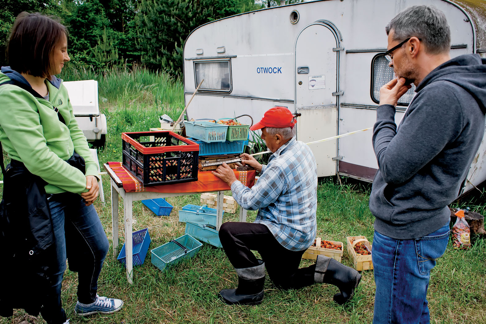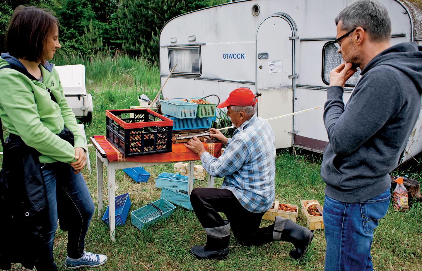 I od trzech lat nie wynajmuje nikogo do pielenia i do zbiorów. Na sezon truskawkowy przeprowadza się do rodzinnej wsi. Daje ogłoszenie w internecie i ludzie przyjeżdżają, sami zbierają, płacą połowę ceny, jaka jest tego dnia na targu w Tarczynie. Koło pola postawił przyczepę, w której mieszka. Tak jest wygodniej. Jest cały czas na miejscu, od szkodników przypilnuje.