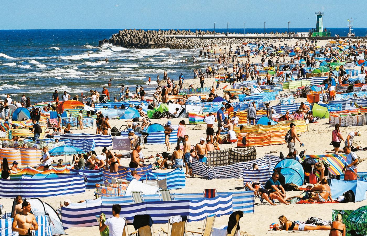 Ruch odżywa punktowo. W głębi Monciaka, tej z Krzywym Domkiem i sceną kameralną Teatru Wybrzeże, życie toczy się wartko, gra muzyka, nikt nie nosi maseczek. Można ulec wrażeniu, że to prawie normalny sezon. Różnicę widać ledwie o przecznicę dalej – tam znów kompletna cisza. Na plażach podobnie: w pobliżu wyjść nagromadzone parawany i koce (po kilkanaście, więc też trudno mówić o tłumie), trochę dalej pojedyncze odosobnione grajdoły, krzyk mew i szum fal.