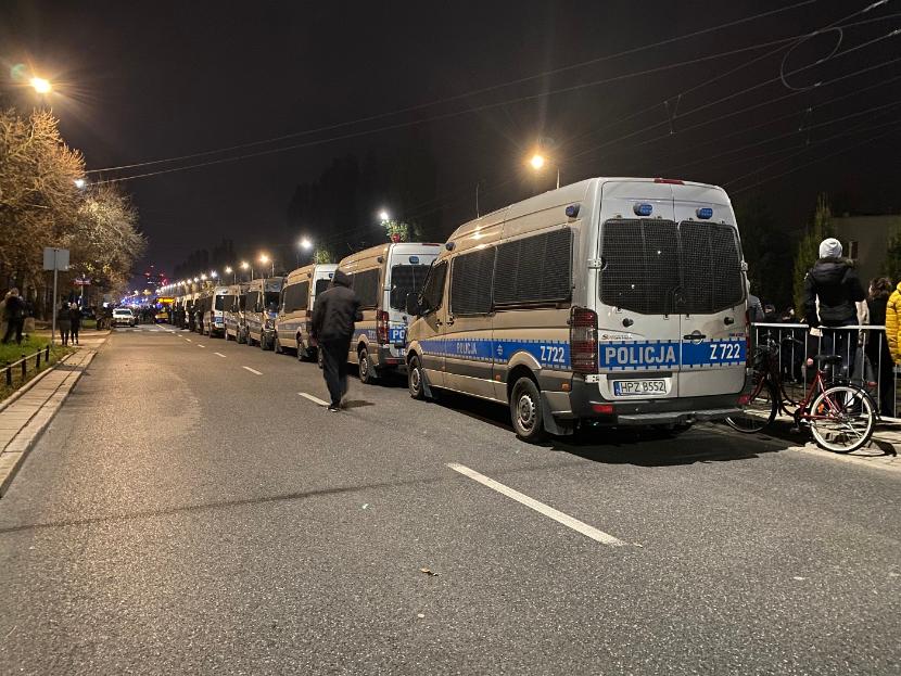 Jeszcze więcej radiowozów pojawiło się pod samym domem prezesa PiS – ustawione jeden za drugim tworzyły sznur ciągnący się przez ponad kilometr aż do pl. Wilsona. Policja zaczęła wydawać przez głośniki komunikaty: „Uwaga, uwaga, mamy stan epidemii. Znajdujesz się w strefie czerwonej, w której obowiązuje nakaz zakrywania ust i nosa. Organizowanie zgromadzeń spontanicznych jest zabronione. Naruszając przepisy, narażasz się na odpowiedzialność karną”. „Liczymy na waszą odpowiedzialność i rozsądek” – dodawała. „Bądźcie ludźmi” – odpowiadali protestujący. „Wasze zachowanie jest niezgodne z prawem” – komunikowali policjanci. „Wasze też” – protestujący nie pozostawali dłużni.