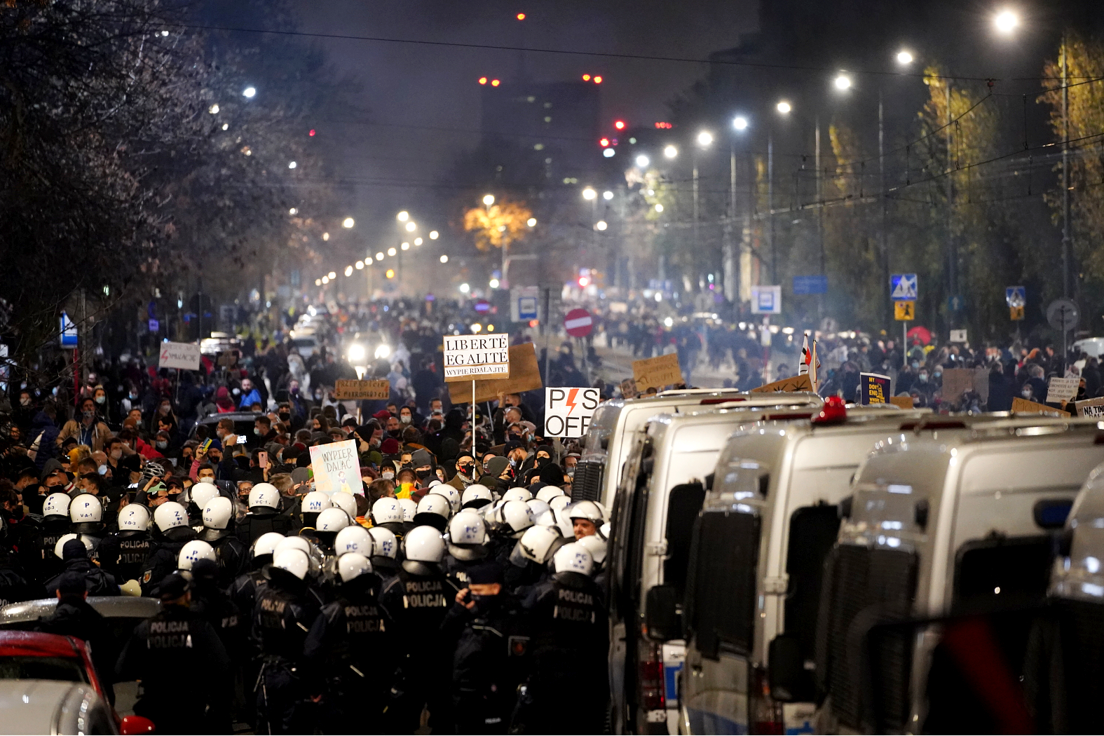 Karolina Micuła ze Strajku Kobiet: – Jesteśmy nie tylko w Warszawie, ale w całej Polsce, a czegoś takiego od lat 80. jeszcze nie było! Aktywistka zaintonowała kilka marszowych okrzyków, które niosą się w kraju od ponad tygodnia („Kiedy państwo mnie nie chroni, mojej siostrę będę bronić”, „Kto nie skacze, ten za PiS”, „Moje ciało, moja sprawa”). – Niejaka pani Emilewicz powiedziała przed chwilą w TVN, że wolność kobiety kończy się, gdy zachodzi w ciążę.