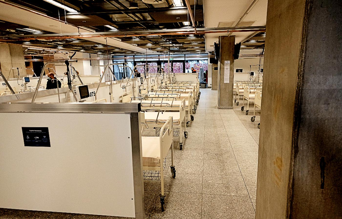 Szpital zaimprowizowany w pośpiechu w salach konferencyjnych Stadionu Narodowego został otwarty w ubiegły czwartek. Przyjechał premier Morawiecki, dokonał obchodu pustych łóżek, pochwalił nadzorujących powstanie placówki za imponujący wysiłek organizacyjny i ogłosił jej uruchomienie.