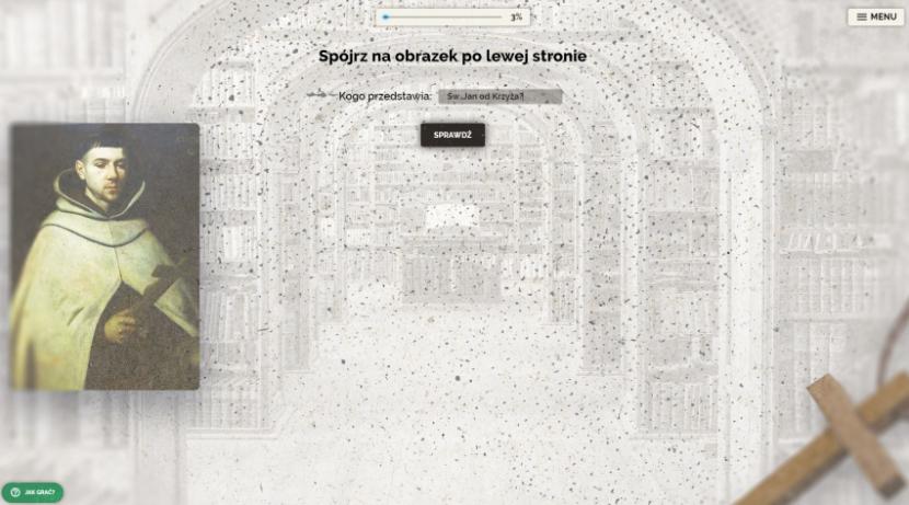 Równie nieciekawy jest moduł „Papież a młodzi”. (Czy naprawdę trzeba było wymieniać wszystkie daty i lokacje Światowych Dni Młodzieży, które organizował zarówno papież Polak, jak i jego następcy?). Dużo więc obiecywałem sobie po „Bibliotece Jana Pawła II”, do której odbiorca musi – uwaga – odszukać szyfr! W teorii zadanie stwarza przestrzeń dla kilku łamigłówek…, w praktyce – po wczytaniu się w biogram św. Jana od Krzyża i przeczytaniu fragmentów poezji św. Jana od Krzyża należy odpowiedzieć na takie oto ważkie pytanie: