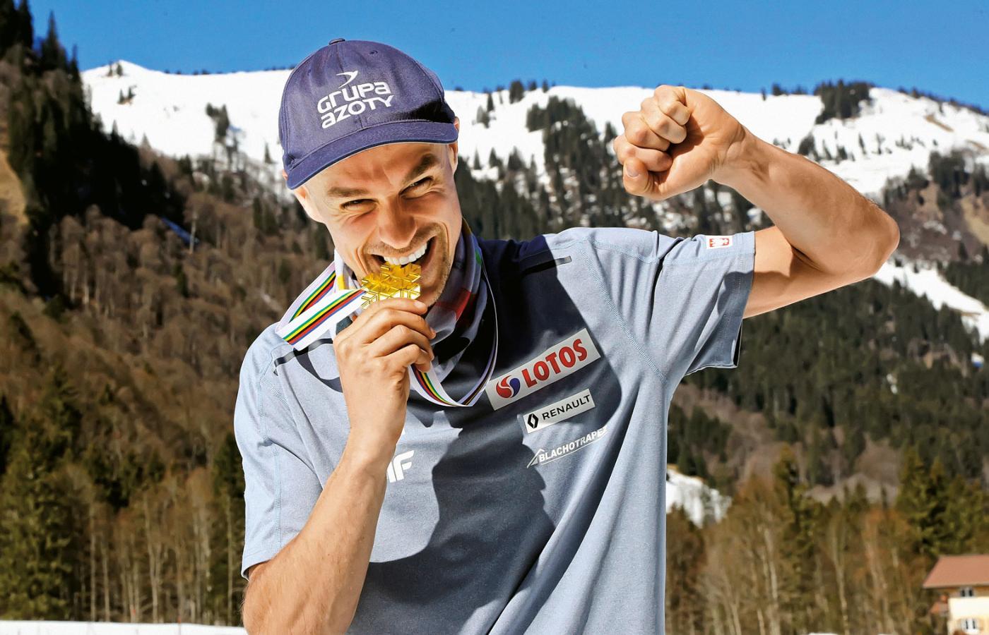 Dołączył właśnie do polskiego pocztu mistrzów świata, ale nie da się go porównać ani ze skoczkowym umysłem ścisłym Dawidem Kubackim, ani z potrafiącym zaprogramować się na wygrywanie i posiadającym zdolność koncentracji mistrza zen Kamilem Stochem. Jeśli chodzi o błyskotliwość na progu skoczni i moc odbicia, jest trochę jak Adam Małysz, ale do jego automatyzmu mu daleko. Piotr Żyła dojrzał do indywidualnego mistrzostwa świata późno, bo dopiero mając 34 lata. Małysz w tym wieku skończył karierę.