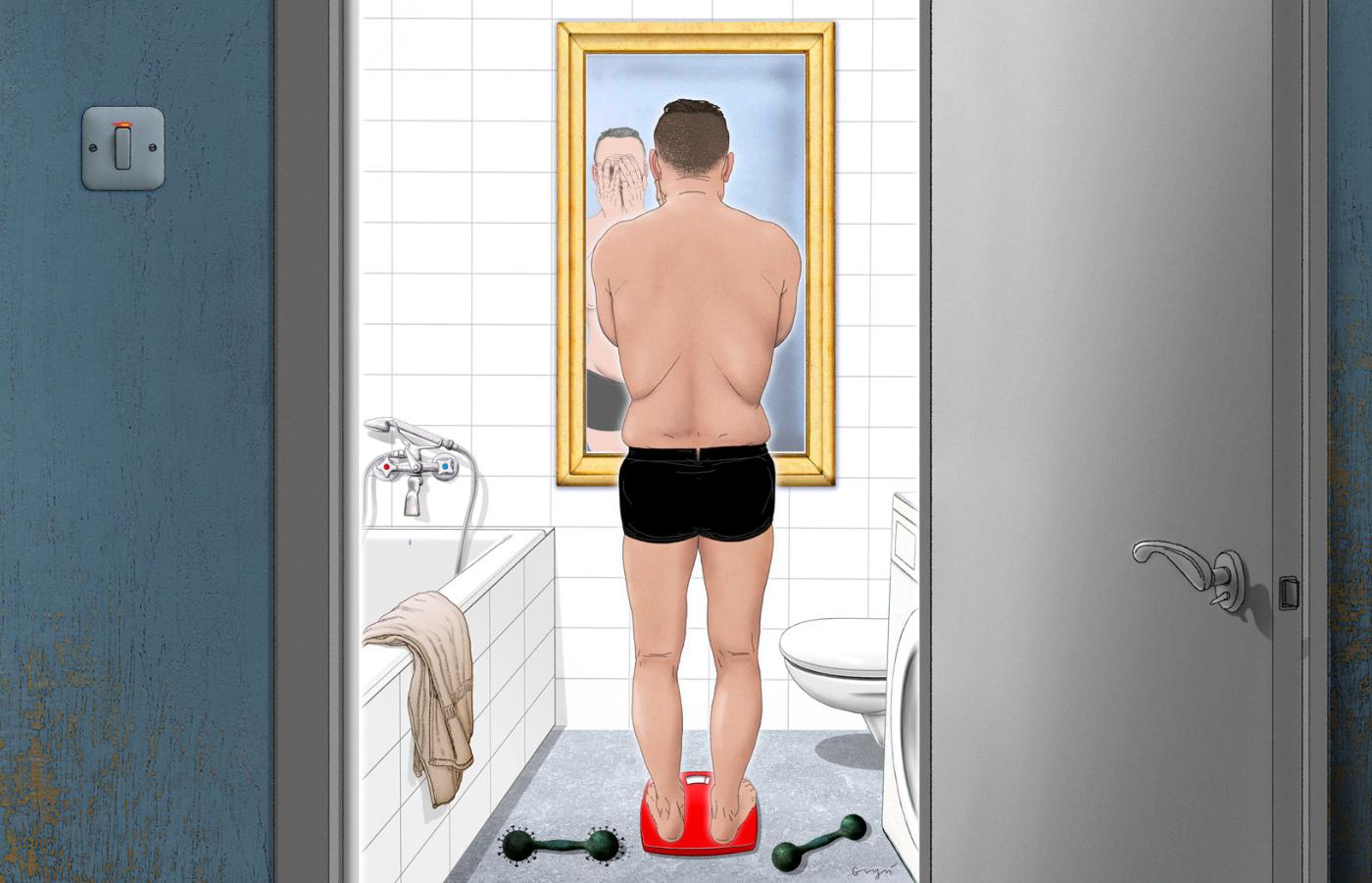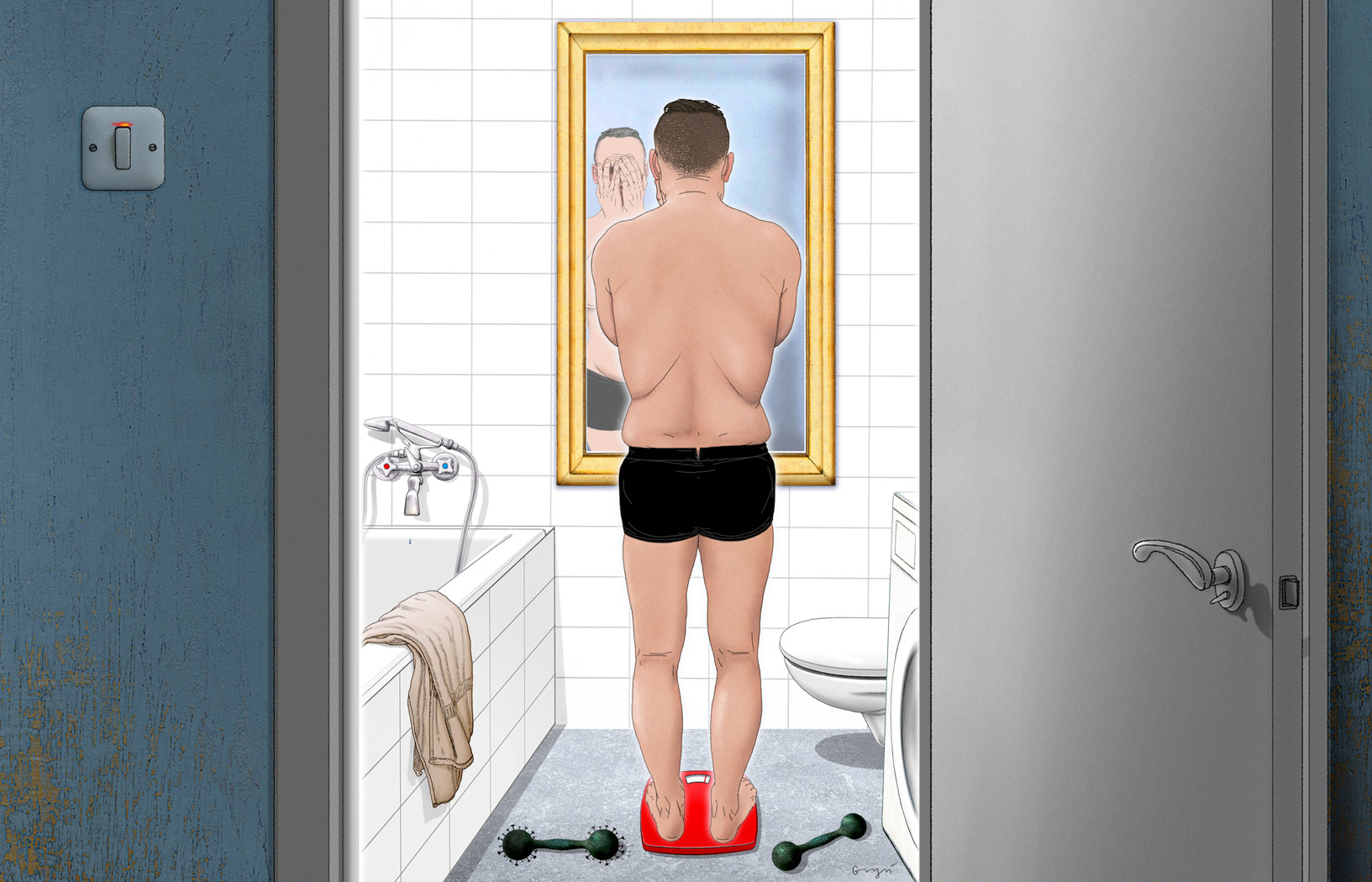 U Tomasza, psychologa i przedsiębiorcy z Pomorza, konfrontacja z otyłością to nie był jeden moment: – Jeśli jesteś cały czas w domu, to co rusz trafiasz na swoje odbicie w lustrze. Widzę, co się ze mną stało, choć z drugiej strony stosuję klasyczne zachowania wyparciowe. Ostatni raz stanąłem na wadze ze trzy tygodnie temu. Pokazała 104 kg. A rok temu było 15 kg mniej, choć to i tak trochę za dużo. Ze swoim wzrostem – 182 cm powinien ważyć nie więcej niż 85 kg.