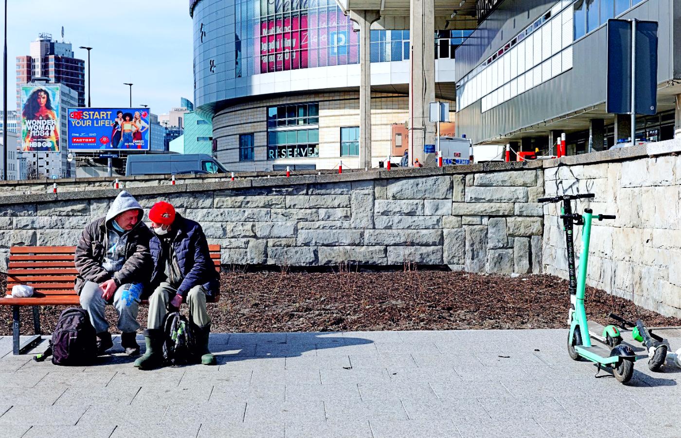 Koronawirus jeszcze skomplikował życie na ulicy, a jesień przyniosła drugą falę zachorowań. Bezdomni udali się do noclegowni, skąd wielu z nich odsyłano z kwitkiem – chętni musieli okazać aktualny ujemny test na covid albo wybrać się do strefy buforowej. W dużych miastach porobiły się kolejki; w stolicy miejsca buforowe były dwa (jedno dla kobiet i jedno dla mężczyzn). Kto się nie dostał, musiał spędzić kolejnych dziesięć dni na ulicy. Interweniował w tej sprawie rzecznik praw obywatelskich Adam Bodnar.