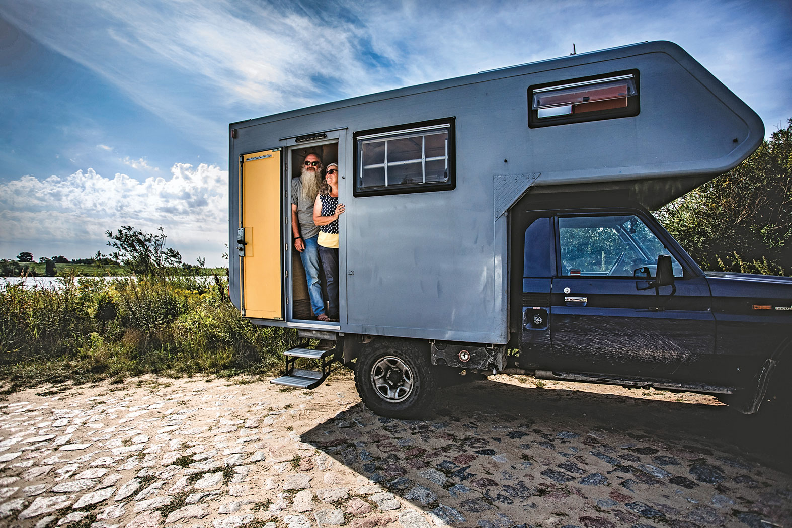 Kamper to mobilny domek. Ten pana Jacka teoretycznie jest 5-osobowy, ale w 4 osoby podróżuje się komfortowo. W Chłapowie są we trójkę – pełen luz. Ogrzewanie gazowe, zbiornik na czystą wodę mieści 120 l, na szarą (od mycia naczyń i kąpieli) – 80 l, do grzania wody – bojler. Na dachu mają panele słoneczne. Lodówka pracuje w trzech trybach. Ze trzy dni da się przetrwać bez dostępu do prądu, czyli korzystania z kempingu, gdzie zaopatrują się w czystą wodę, pozbywają szarej oraz fekaliów z chemicznych kaset.
