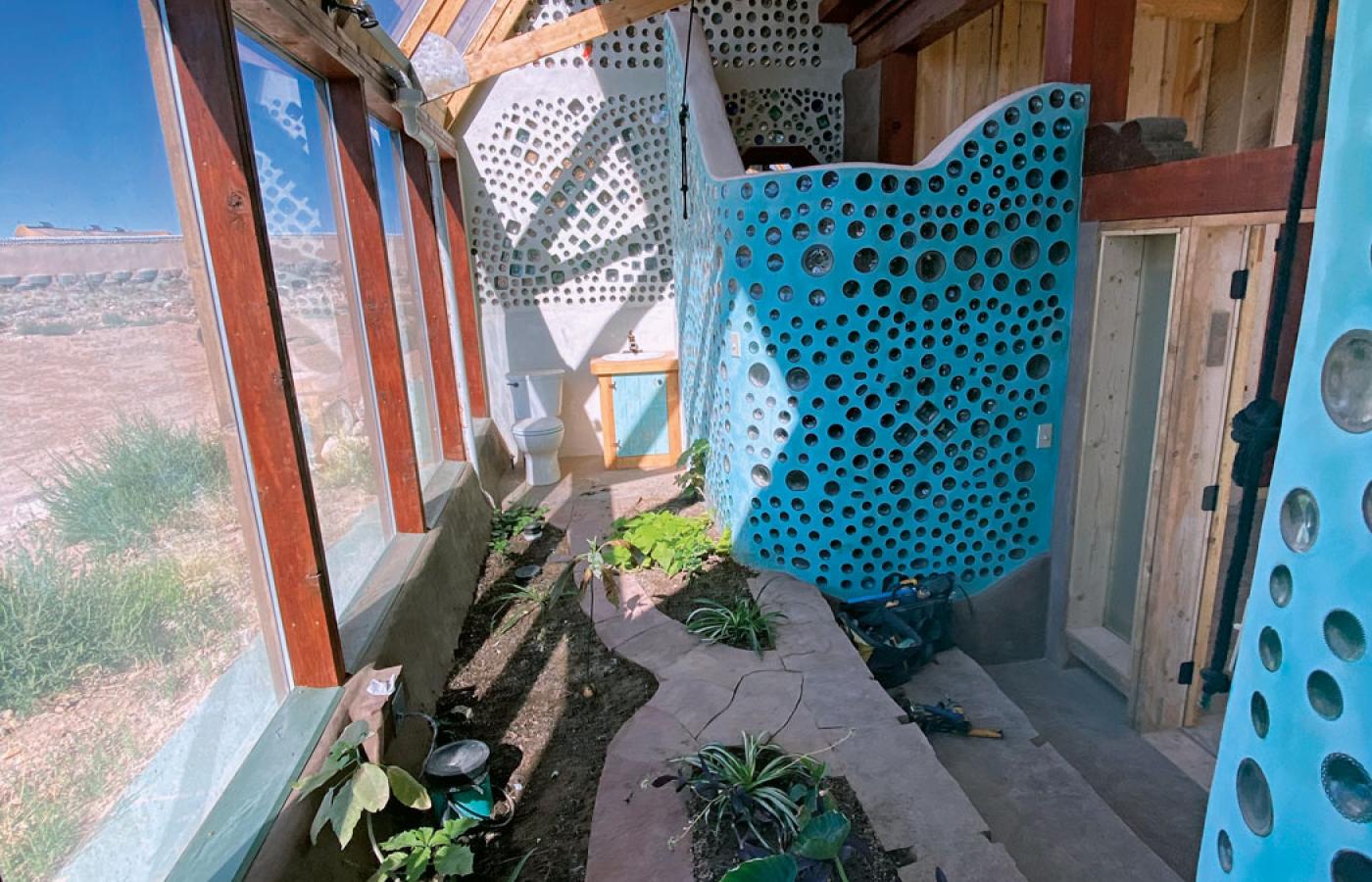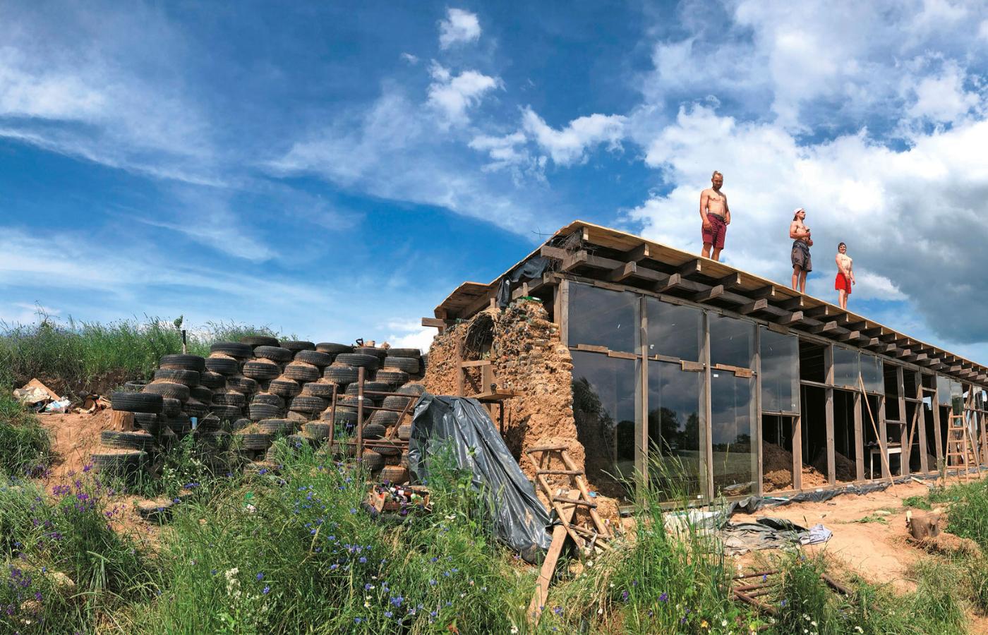 Hipisowskie korzenie ma też idea budowania earthshipów (ang. ziemnych statków). Jej twórca, amerykański architekt Michael Reynolds, w 1970 r. wymyślił domy z lokalnie dostępnych materiałów i odpadów. Chodziło o to, by nie produkować nowych śmieci, a wykorzystać już istniejące. Stąd przydomek Reynoldsa Garbage Warrior (ang. Śmieciowy Wojownik). Główny budulec to opony ciasno nabite ziemią. Układa się je jak cegły, szczeliny wypełnia butelkami, puszkami, gliną. Takie ściany działają niczym baterie – zatrzymują ciepło dostarczane przez wielkie, wychodzące na południe okna. Z założenia odpowiednio zbudowany earthship to dom pasywny – niewymagający dodatkowego ogrzewania. Jednak chłodniejszy klimat wymaga nieraz wstawienia kominka. Filtrowana deszczówka służy do picia i mycia, panele słoneczne generują prąd, szklarnie i ogród dostarczają pożywienia.