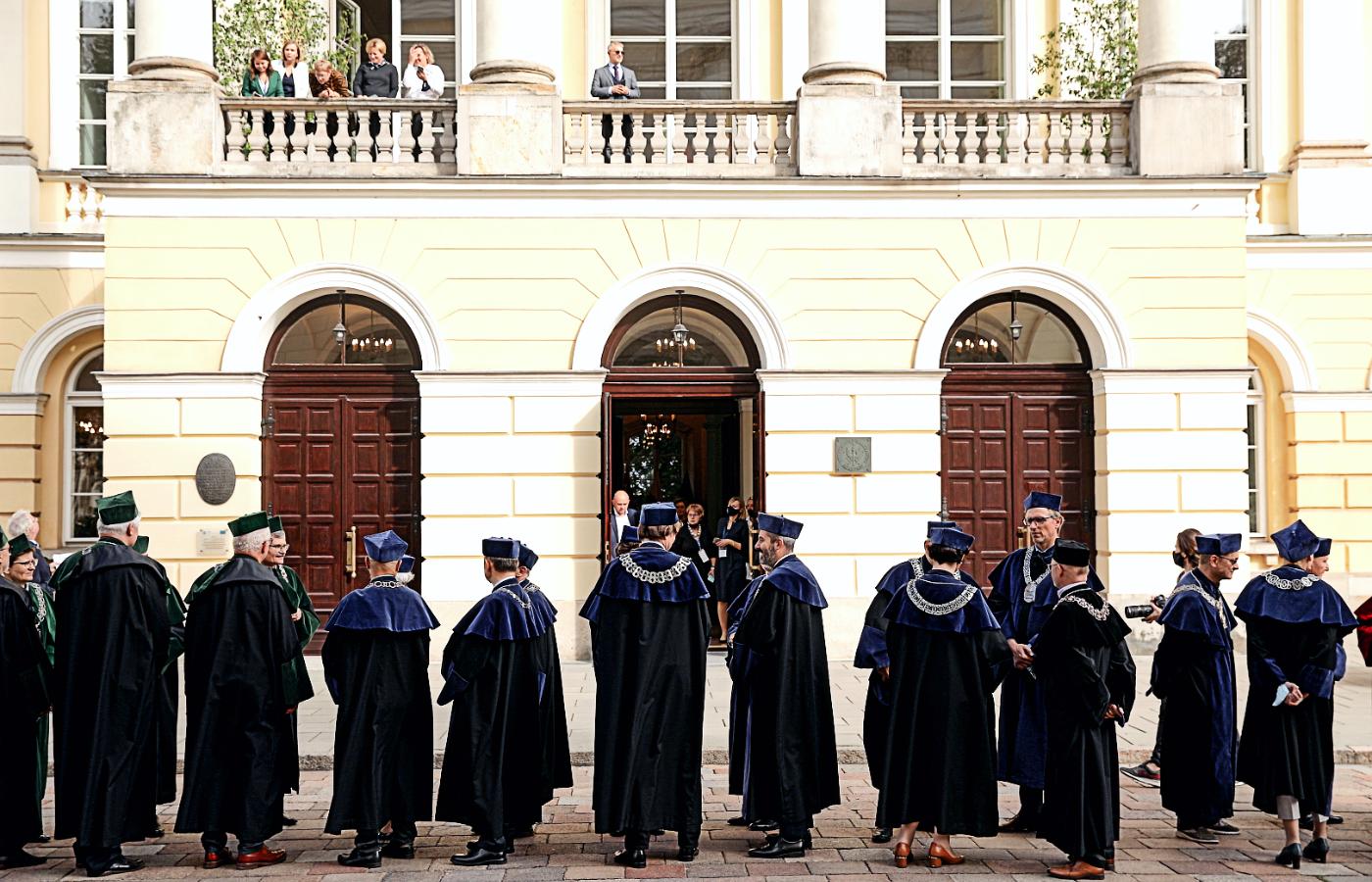 Dwie inauguracje roku akademickiego – środowiskowa we Wrocławiu, a więc wspólna dla wszystkich tutejszych uczelni, oraz na Uniwersytecie Warszawskim dla rządzącej Zjednoczonej Prawicy – nie będą miłym wspomnieniem. We Wrocławiu podczas wystąpienia premiera, absolwenta historii na tutejszym wydziale, przeciwko sytuacji na wschodniej granicy zaprotestowali naukowcy. Przed Mateuszem Morawieckim z transparentem z napisem „Nie zabijaj uchodźców” stanęła prof. Urszula Glensk, a obok niej dr hab. Marcin Czerwiński, prof. Wojciech Browarny i dr hab. Paweł Mackiewicz.