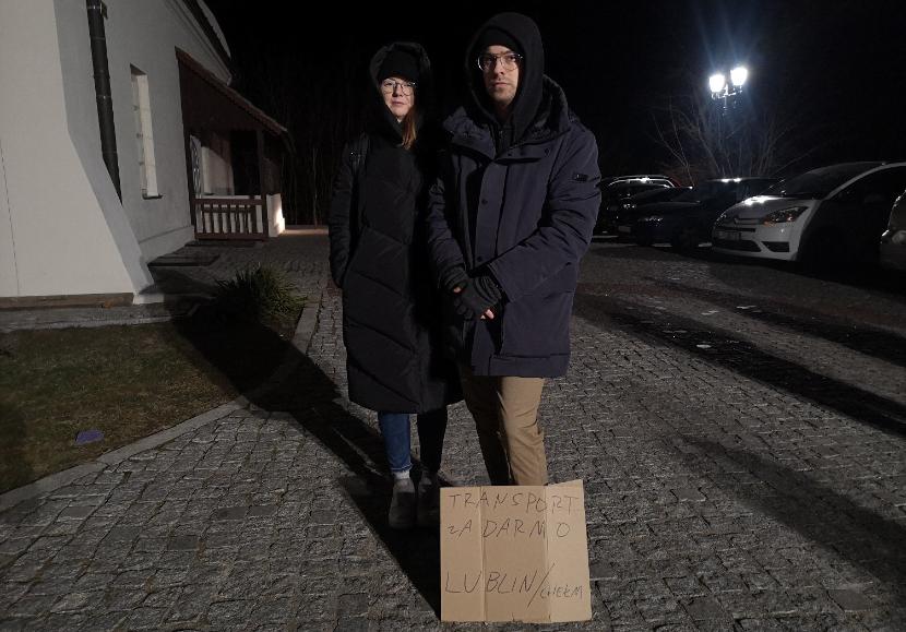 Wracam do ciuchów (swoją drogą – po co ich tutaj tyle, przecież ci ludzie wyszli z domu ubrani) i pytam Eweliny i Aleksandra, który opisuje pudła z rzeczami po ukraińsku, czy ich to nie zniechęciło, że nie znaleźli nikogo, kto chciałby skorzystać z pomocy w podwózce. – To był nasz pierwotny plan, ale to, co robimy teraz, też jest ważne – słyszę w odpowiedzi. Na docierających tu mieszkańców Ukrainy z reguły czekają najbliżsi lub inne umówione osoby, z kolei podróżujący autobusami rejsowymi czy busami załatwiają w punkcie recepcyjnym najważniejsze potrzeby – rozprostowania kości, zagrzania się, skorzystania z toalety lub darmowego posiłku – i wracają do swoich pojazdów. Osób, które potrzebowały podwózki do któregoś z miast, było w ciągu dnia naprawdę niewiele. – Może teraz będzie ich więcej – słyszę od Eweliny. – Ale dochodzi 20... – rzucam pytające spojrzenie. – No więc chyba już tu zostaniemy, najwyżej kimniemy się w samochodzie – mówią dziewczyny. – Dobrze, że tu jesteśmy, bo gdzie indziej mielibyśmy być? – kwituje Aleksander.