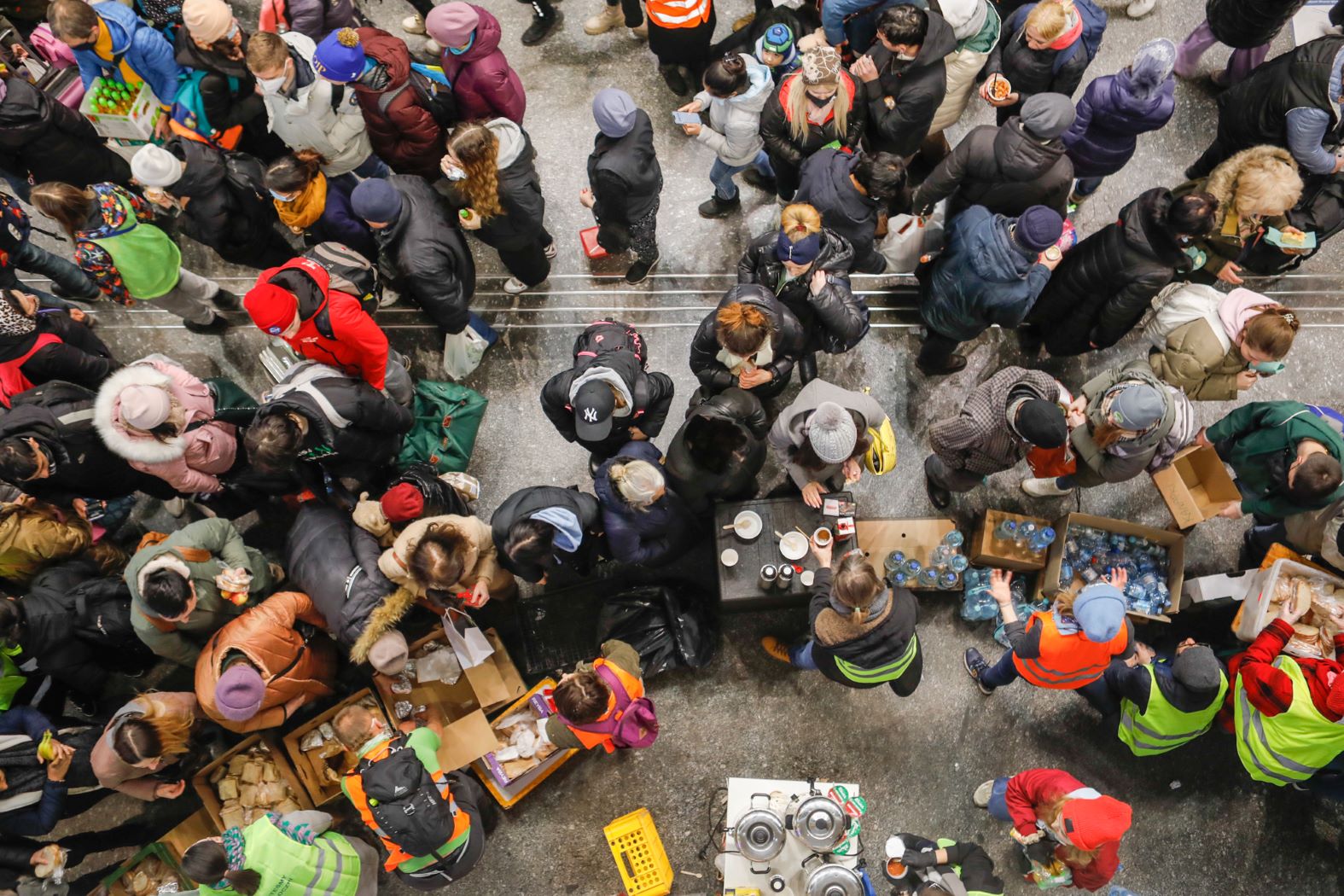 Wielu z nich chce jechać dalej – na Zachód, głównie do Berlina. Spółka PKP Intercity zaproponowała im darmowe przejazdy pociągami TLK i IC. Z Centralnego odjeżdża jeden taki pociąg dziennie – o 4:13. Jeśli wsiądą do innego, a będzie to międzynarodowy Express InterCity, będą musieli zapłacić. Ale tego nie wiedzą. Panie w okienku nie znają ukraińskiego, więc im nie wytłumaczą. Poza tym w kolejce stoją dziesiątki innych podróżnych, którzy też chcieliby kupić bilet, więc na rozmówki polsko-ukraińskie nie ma czasu. Dlatego informowanie uchodźców o możliwościach podróży wzięli na siebie działający oddolnie aktywiści. Można ich rozpoznać po zielonych kamizelkach.