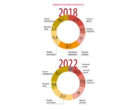 Z jednej strony pandemia, poczucie zagrożenia, zamknięcia. Z drugiej strony masowe protesty kobiet, wymuszone zachowaniem rządzących i radykalnym zaostrzeniem prawa aborcyjnego. Po trzecie wreszcie, silne działania tej części świata sztuki, kultury i nauki, która mówi o prawach człowieka. Coś się zakotłowało. Nastąpiły bardzo silne zmiany wśród kobiet. Coraz bardziej się liberalizują i są coraz bardziej świadome, by sięgać po to, co się człowiekowi należy w XXI w. Przeskok jest ogromny. Można mówić wręcz o rewolucji obyczajowej. W poprzednich badaniach widać było już światełko, ale jeśli popatrzymy na kobiety dziś, to część nastawiona niezwykle nowocześnie, ekonomicznie i światopoglądowo, wzrosła z 43 do prawie 51 proc.