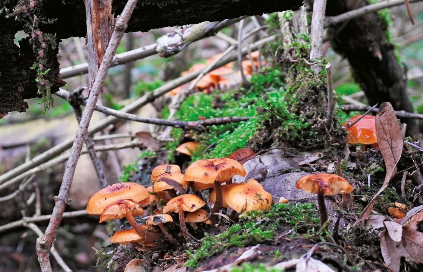 Okno pogodowe jest węższe niż w sezonie jesiennym: nie wyrusza się na grzyby skoro świt ani późnym popołudniem, bo jest jeszcze albo już za ciemno. Z Beatą Wieczorek umawiamy się w styczniową sobotę na godz. 10. Terenówką przebijamy się przez pola pod Gardzkiem (woj. lubuskie), wjeżdżamy w las obok strumyka, nagle gwałtownie hamujemy. – Jakie piękne uszaki! – pokazuje, bo oko reportera nie nawykło do szukania grzybów na drzewach. Uszaki bzowe uzasadniają swoją nazwę: niczym małżowiny ludzkiego ucha wyrastające z konaru próchniejącego bzu. Trzymają się go solidnie, chwycić trzeba mocno, żeby uszu (i tak się o nich mówi) nie rozerwać. Lądują w koszyku, podobnie jak rosnąca kilkadziesiąt metrów dalej na zwalonej wierzbie płomiennica zimowa, ognistopomarańczowa niczym trujak. Odchodzi od drzewa łatwo, rośnie w wiązkach, w okolicy jest jej sporo. Do pełni szczęścia brakuje boczniaka ostrygowatego: z płomiennicą i uszakiem tworzy „zimową trójcę” najpopularniejszych polskich grzybów sezonu, który dawniej uchodził za martwy.