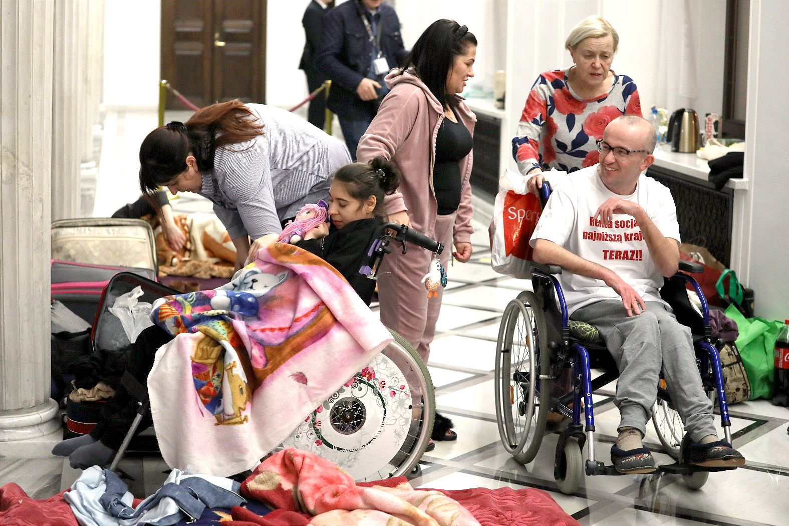 Marszałek Witek wyłączyła jej mikrofon. Protest opiekunów dorosłych osób z niepełnosprawnościami wraz z ich podopiecznymi ruszył w poniedziałek 6 marca, tuż przed trzydniowym posiedzeniem Sejmu. Wszyscy zapowiedzieli protest okupacyjny, tym razem „do skutku”, a więc podniesienia renty socjalnej do wysokości płacy minimalnej, czyli do 3490 zł brutto. Zasiłek pielęgnacyjny do 2023 r. wynosił 200 zł i został zamrożony przez rząd Zjednoczonej Prawicy. Podobne protesty miały miejsce w 2018 i 2014 r.
