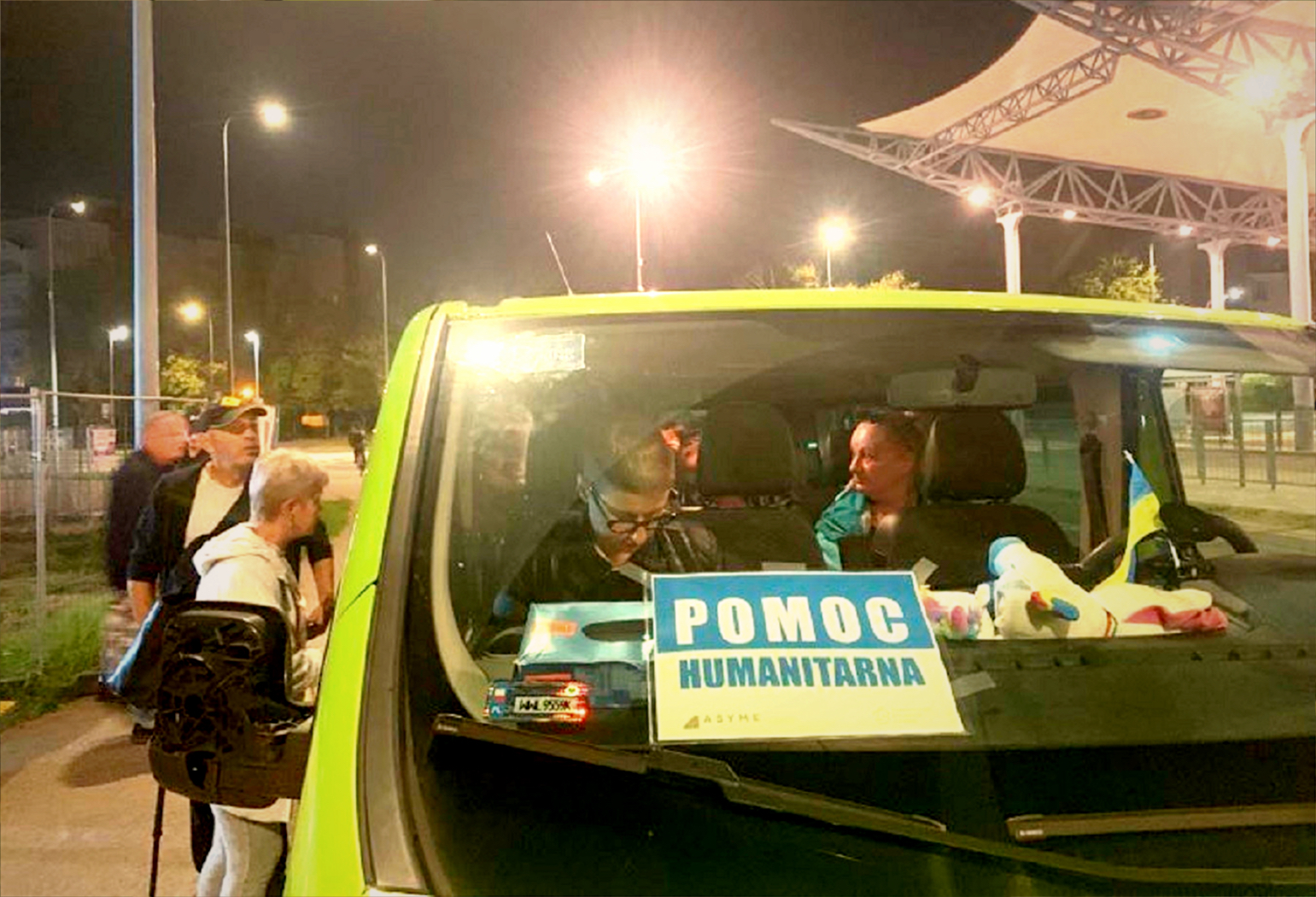 Groszek to dziewięcioosobowy zielony van, do którego – jak się człowiek uprze – może się zmieścić nawet 12 osób. Do tego walizki, wózki dziecięce, plecaki, reklamówki i wszystko, w co można upchnąć życie uciekającego przed wojną uchodźcy.