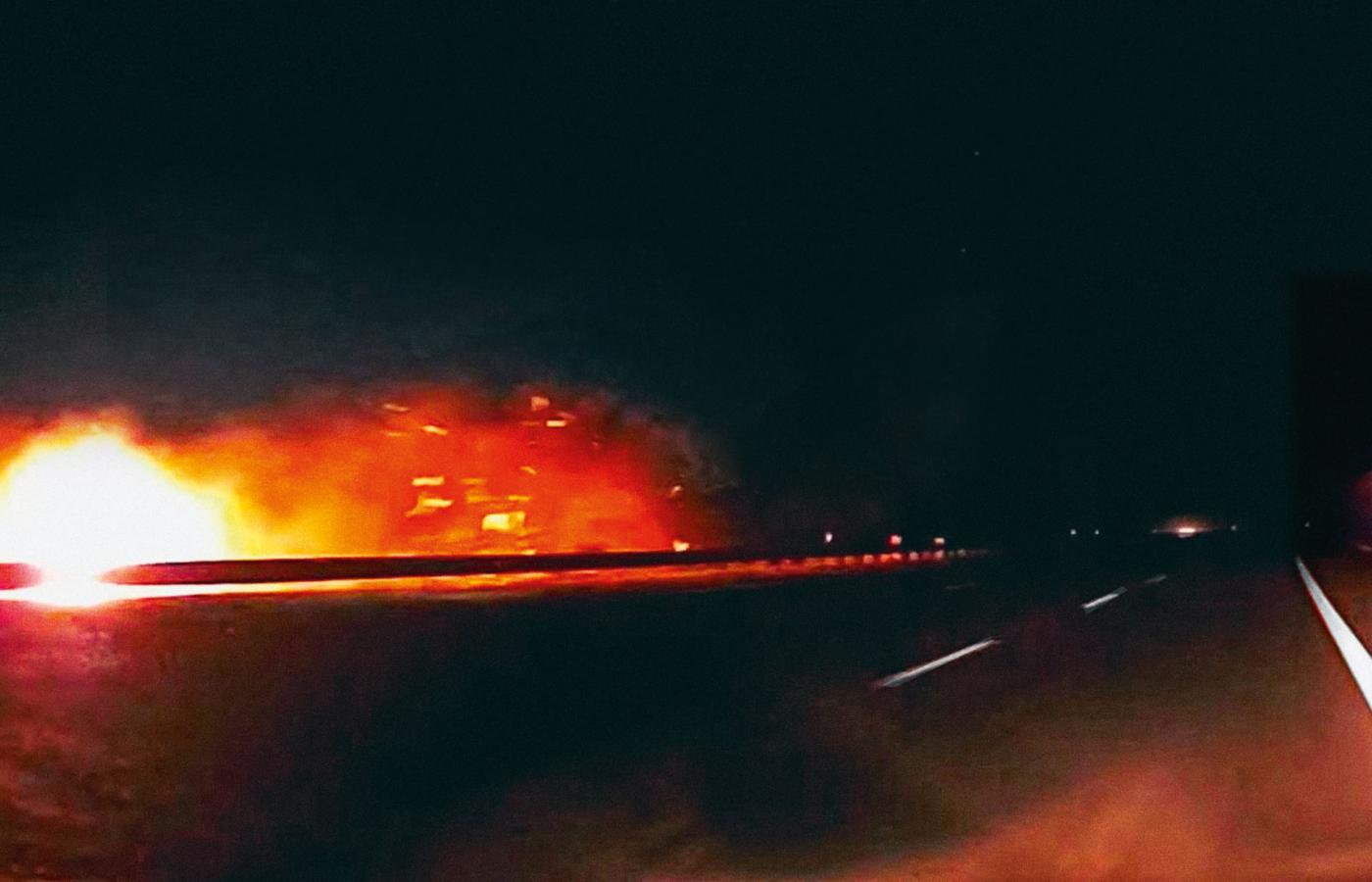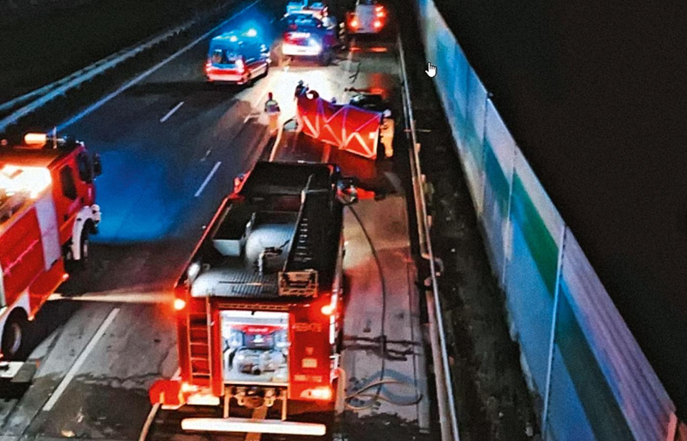 Ok. 200 m dalej zatrzymało się BMW. Jego front był pogruchotany. Na ok. 500 m autostrady leżały fragmenty karoserii (zanim droga nie została zablokowana, inni kierowcy mijali je slalomem). Gołym okiem było widać, że BMW też uczestniczyło w wypadku. Potwierdziła to straż pożarna. Policja rutynowo też to robi, w takich sytuacjach zwykle dochodzi do aresztowania domniemanego sprawcy, żeby nie mataczył, ale tym razem nic takiego się nie wydarzyło. Co więcej, w komunikatach policji i prokuratury BMW w ogóle się nie pojawiło. „Kierujący pojazdem Kia na chwilę obecną z niewyjaśnionych przyczyn uderzył w bariery energochłonne, następnie auto zapaliło się” – podano.