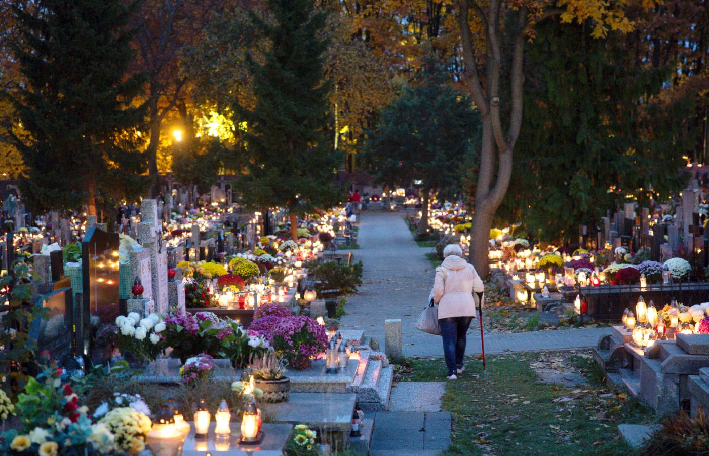Kiedy zapada zmrok, na zabytkowym Cmentarzu Powązkowskim w Warszawie jest tłoczno jak na lotnisku. Wśród ludzi, którzy odwiedzają groby bliskich, widać osoby zbierające pieniądze na cele charytatywne. Są stoiska ze zniczami i chryzantemami, księża sprzedający msze w intencji zmarłych.