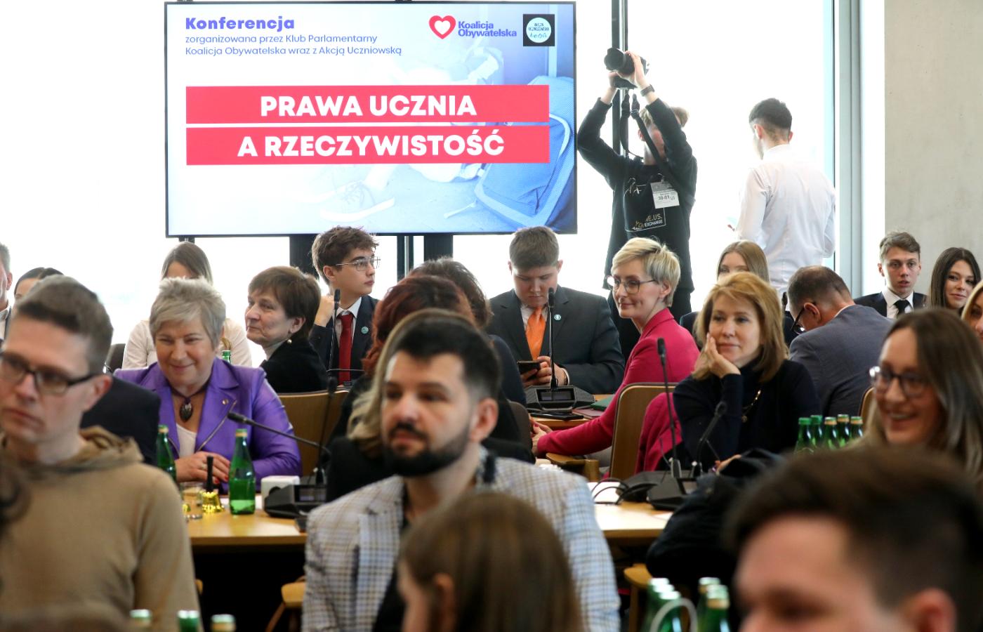 Powołanie rzecznika praw uczniowskich i stworzenie ustawy o prawach ucznia – te postulaty najczęściej wracały podczas konferencji „ZmieńMY edukację” zorganizowanej w Sejmie przez Akcję Uczniowską przy wsparciu Koalicji Obywatelskiej. Zainteresowanych udziałem w spotkaniu uczniów z różnych części kraju przyjechało aż kilkuset. Przygotowaną salę trzeba było zmienić na większą, a i tak zabrakło krzeseł.