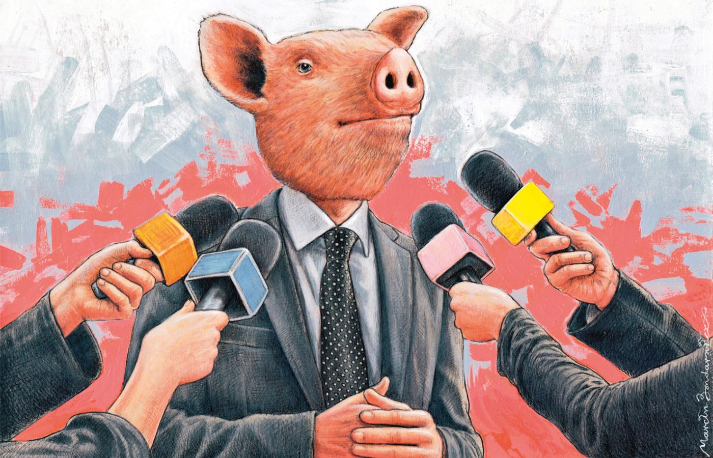 KIEŁTYKA: – Niektórzy się zabezpieczają przed łapaniem za słowa, używając niedookreślonych zwrotów w rodzaju: prawie, podobno, niemal, około. Cynicznie powtarzając przy tym swoją fałszywą tezę. Zdarza się też ubieranie jej w formę pytającą: „czy to prawda, że…”, „czy faktycznie grozi nam…”. Znana metoda Andrzeja Leppera.