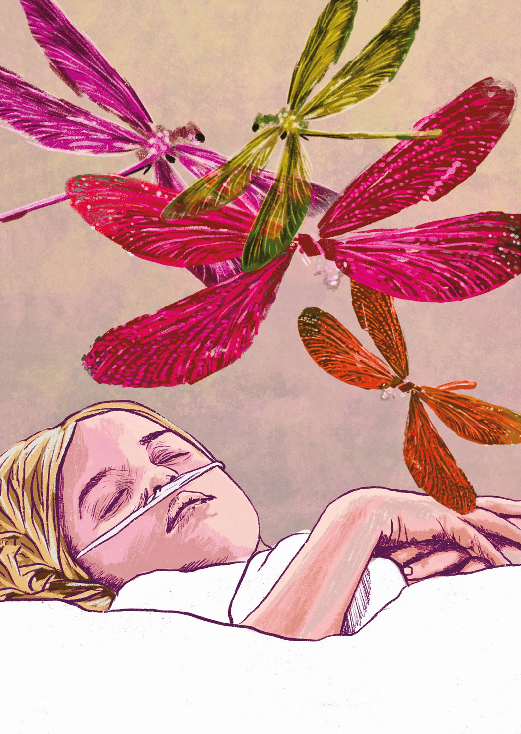 Tak, np. o ważce. To mój ulubiony owad, bo w krajach anglosaskich przybliża dzieciom trudny dla nich temat umierania. Larwa ważki żyje w szarym świecie pod taflą jeziora, wśród cieni. Tam jest jej dom, jej życie. Aż pewnego dnia wspina się po źdźbłach trawy i znika. Dla tych na dole przepadła, ale my wiemy, że stała się czymś pięknym, wolnym, co mieni się nad wodą. Dziecko słyszy to i czuje – śmierć to nie koniec, tylko przejście. Kiedy widzę, jak łapie ten moment, gdy larwa przebije taflę, wiem, że zaczyna rozumieć: pod wodą zostaje smutek, a nad nią – coś, co wciąż żyje, ale już inaczej.