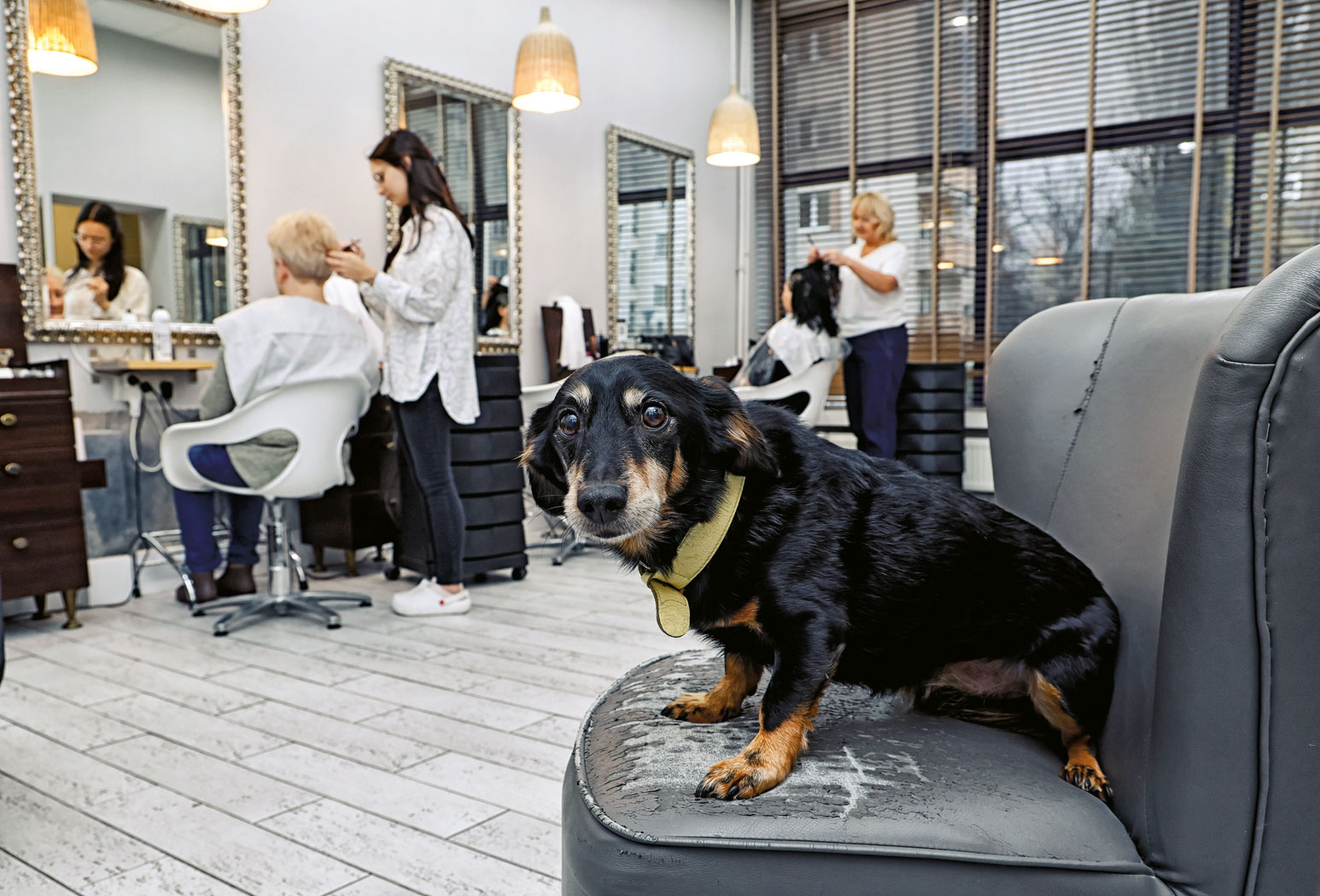 Lemon w salonie fryzjerskim zaczął bywać po pandemii. Początkowo z pewną dozą ostrożności, bo nie wiadomo było, jak na psa zareagują klientki. – Aż któregoś razu na fotelu usiadła bardzo wymagająca pani. I nagle, bez ostrzeżenia, Lemon wskoczył jej na kolana. Wszystkie zamarłyśmy. Każda reakcja była możliwa, a prawdę mówiąc, spodziewałyśmy się zdecydowanie negatywnej. A tymczasem Lemon rozbroił tę panią całkowicie – wspomina właścicielka.