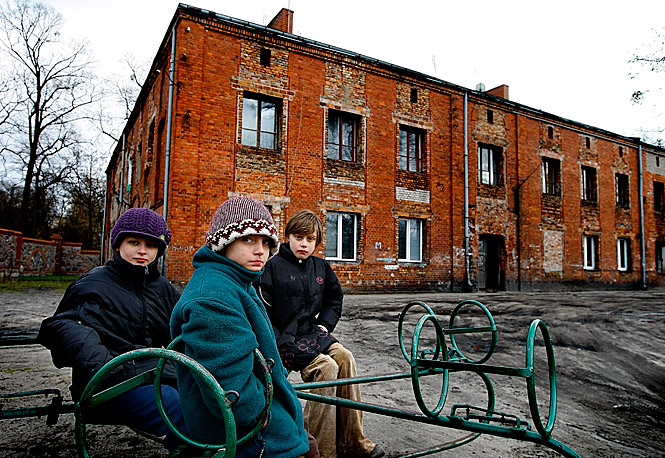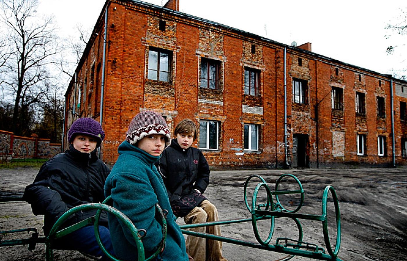 Wiosną dzieci wynurzają się z klatek i bawią się w dom. Ale nie w taki jak ten, w którym mieszkają: w Żyrardowie, na ul. Farbiarskiej 6, w nadpalonym budynku po carskiej szkole policyjnej. Niedawno oddzielono go od parku wysokim murem, żeby relaksujący się w zieleni nie oglądali 44 brudnych dzieci z Farbiarskiej. Miało być w murze przejście, ale nie ma. Więc dzieci organizują sobie przestrzeń w ruinach bielnika w fabryce, gdzie kiedyś produkowano len.