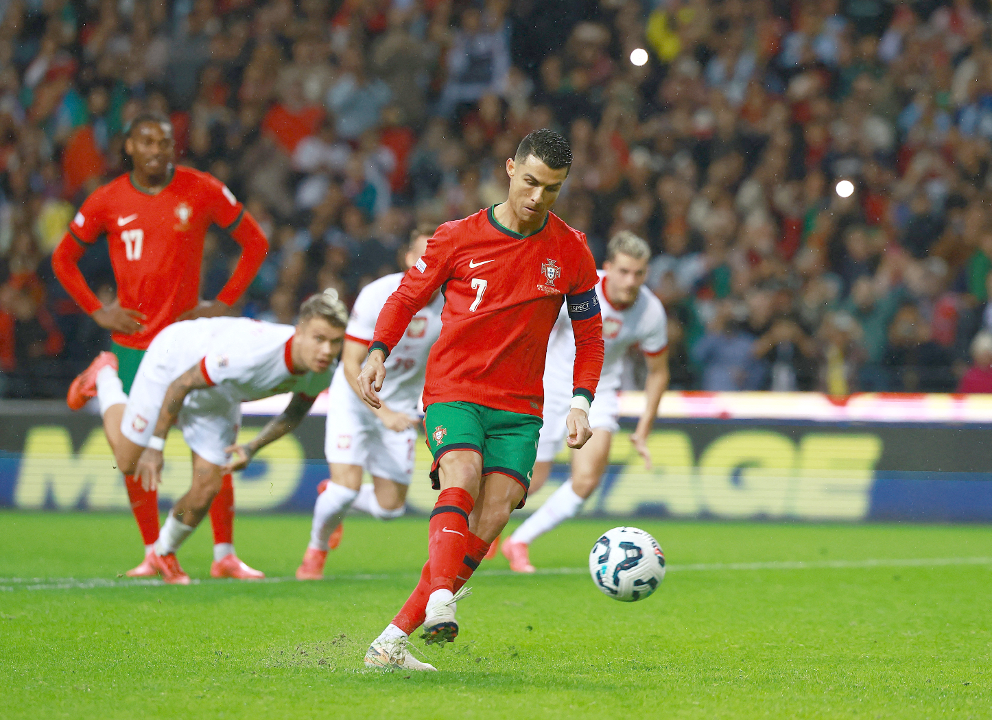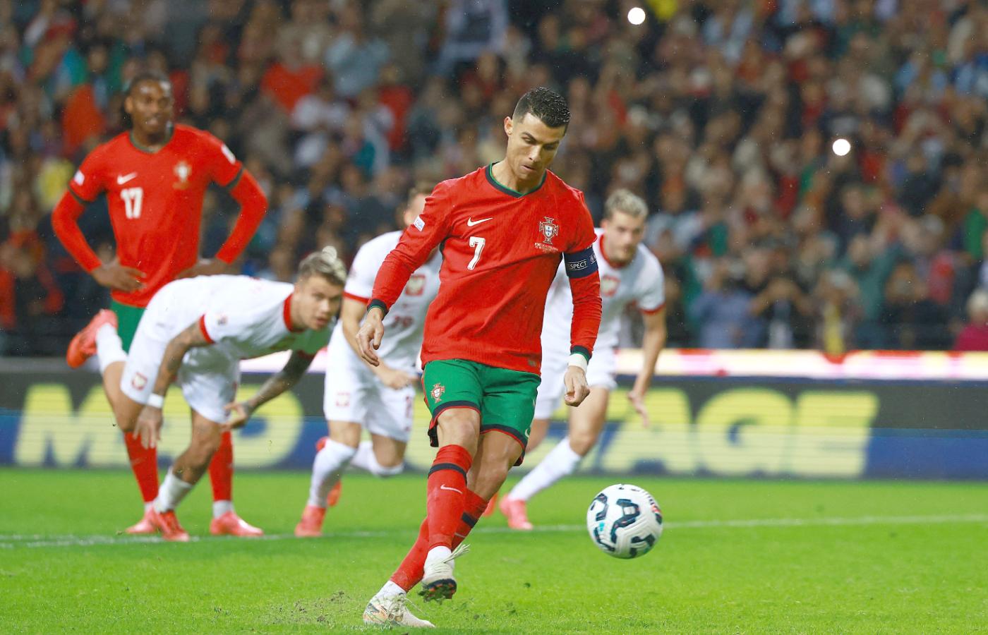 Pierwsze minuty były wyjątkowo spokojne. Zgodnie z zapowiedziami trenera Polacy nie nastawili się na kurczową obronę. Ważne, że nie wyglądali na przestraszonych klasą przeciwników, wśród których też zabrakło kilku znanych piłkarzy. Ale ten najsławniejszy i najstarszy 39-letni Cristiano Ronaldo jeszcze raz wyprowadził swoją reprezentację na stadion w Porto. Obecny był także Rafael Leao, który wyrasta na podstawową postać portugalskiej jedenastki. Jednak przez pierwsze pół godziny ani razu nie zagrozili bramce Marcina Bułki, skutecznie uprzykrzał im życie Bartosz Bereszyński. Niestety podczas świetnej akcji w ataku nasz wahadłowy chwycił się za udo, co oznaczało konieczność zejścia z boiska. Zastąpił go Jakub Kamiński.