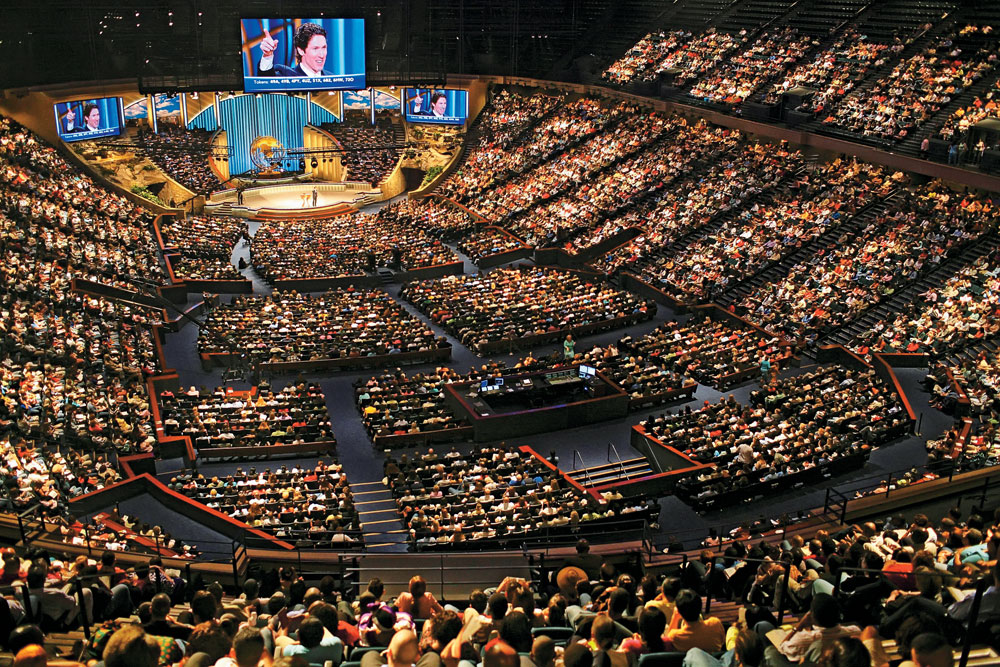 Na widowni uśmiechnięte twarze. Dużo czarnych i Latynosów. Pastor mówi to, co napisał w swojej książce „Your Best Life Now”, sprzedanej w milionach egzemplarzy. Czytamy tam: „Bóg jest Bogiem wybaczającym. To Bóg drugiej szansy. Nieważne, ile razy go zawiedziesz – twoja wartość w Jego oczach pozostaje ta sama”. Trzeba tylko nie tracić wiary w siebie i swoje możliwości – przekonuje w książce pastor. Myśl pozytywnie, Bóg pomaga optymistom. Swoją łaskę okazuje co chwila. Na przykład kiedy ktoś pozwoli ci wjechać samochodem na zatłoczone pasmo na autostradzie, „to także jest favor of God”.