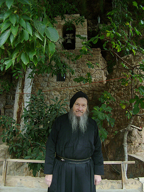 Ubrany w czarny habit maronickich mnichów, z długą, siwą brodą, robi ponure wrażenie. Osoba nie uprzedzona o jego istnieniu może się nawet przestraszyć. Pojawia się niespodziewanie. Jednakże jego radosne usposobienie i uśmiech natychmiast powodują, że goście czują się swobodnie. Energiczny, prężny, wielbiciel piłki nożnej. Nie wygląda na swoje 75 lat. Zatrzymujemy się w cieniu rozłożystego orzechowca, w samym środku ruin. Miejsce, w którym znajduje się pustelnia, jest bardzo malownicze, pełne zieleni.