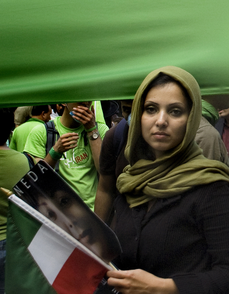 Parisa skrywa głowę pod zieloną apaszką, cztery wspomniane studentki z Isfahanu także zdecydowały się na wyraziste kolory. Barwne chusty były niemą formą protestu, poparciem dla reformatorskich kandydatów Musawiego i Karubiego. Czerń stała się nieoficjalnym kolorem Ahmadineżada. Jeszcze przed wyborami na centralnym placu Isfahanu zbierały się grupy zachowawczych kobiet, od stóp do głów zakrytych czernią. Trzymały plakaty z uśmiechniętym Ahmadineżadem.