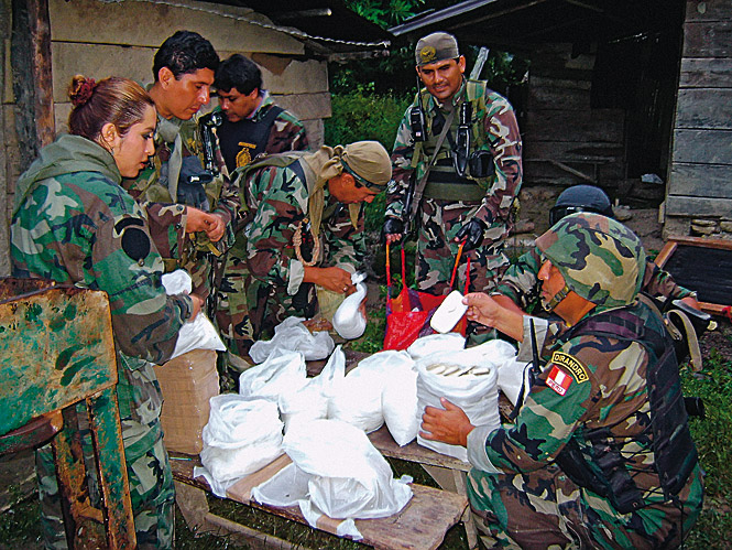 Krótkofalówka Denisa skrzeczy meldunkiem od drugiego patrolu. Dwaj policjanci, którzy odłączyli od reszty, znaleźli fabrykę. Proszą o wsparcie. Szlak prowadzi w głąb dżungli. Po kolana w rzadkim błocie, po śliskich kładkach nad strumieniami i bagnami. Na miejscu są dwie fabryki kokainy, ale po przestępcach ani śladu. – Są sprytni – wyjaśnia Denis. – Przy drodze dojścia do fabryki zawsze mają strażnika. To może być na przykład chłop udający, że pracuje przy wycinaniu zarośli. Gdy zobaczy patrol, przez radio ostrzega tych w fabryce. Ale mamy rezultat ich pracy. Z ilości zużytych liści mogę sądzić, że pracowali tu przynajmniej trzy miesiące.