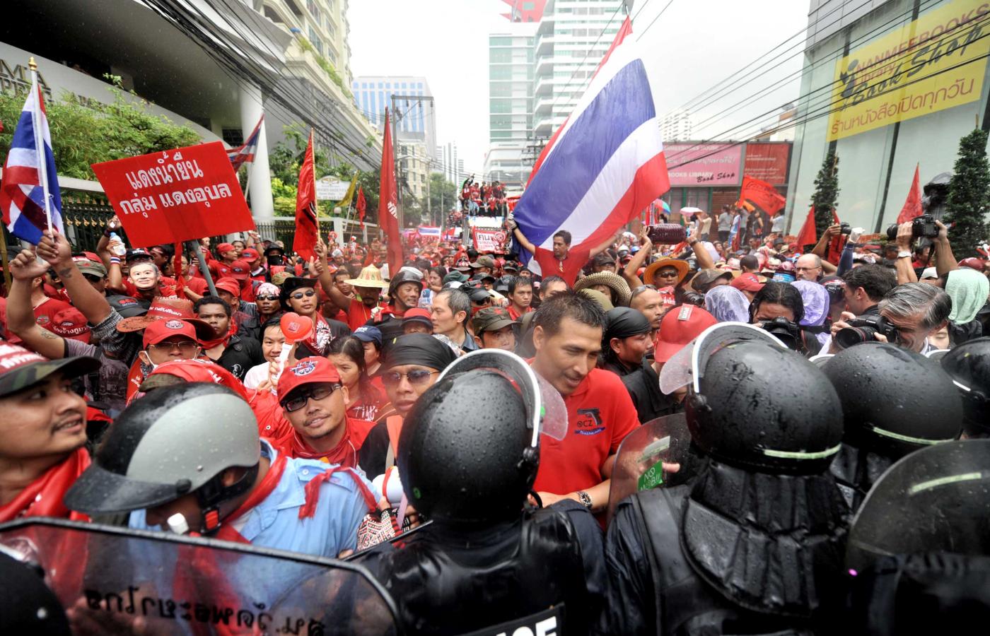 Czerwone koszule, zwane tak od koloru swych strojów i sztandarów, po miesiącu pokojowych wieców brutalnie starły się z siłami porządkowymi. 10 kwietnia zginęło 21 osób, w tym czterech funkcjonariuszy, a w sumie w starciach ucierpiało ponad osiemset osób. „To początek rewolucji. Gospodarczo Tajlandia jest państwem nowoczesnym. Społecznie i politycznie to państwo feudalne. Zmiana musi nadejść” – zapowiada Jakrapob Penkair, rzecznik opozycyjnych protestów.