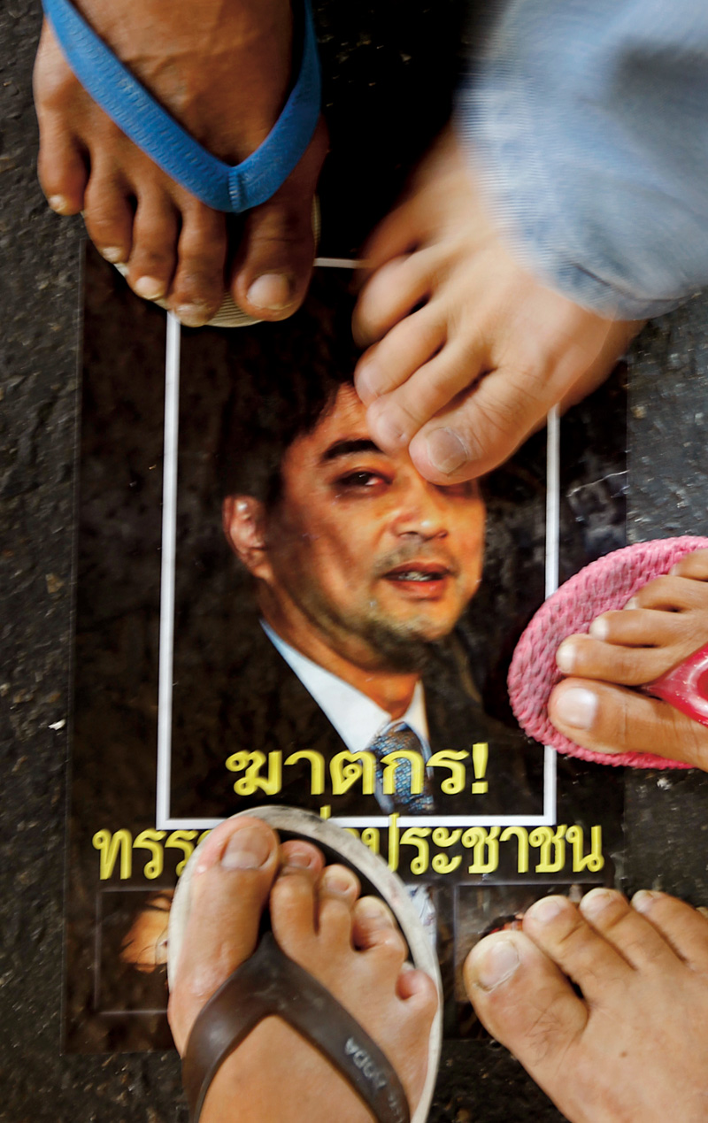 Tym razem zaczęło się na ulicach starego miasta w Bangkoku, którymi od połowy marca ciągnęły codzienne wielotysięczne manifestacje czerwonych koszul, przeciwników rządu rekrutujących się z najbiedniejszych warstw społeczeństwa. Chylący się ku upadkowi rząd premiera Abhisity Vejjajivy ani myślał spełnić dezyderatów manifestantów żądających rozpisania nowych wyborów. Premier schronił się w bazie wojskowej i wprowadził stan wyjątkowy.