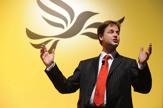 To właśnie oni mogliby być sprawcami politycznej sensacji, gdyby tylko przegonili laburzystów 58-letniego Gordona Browna. Już w maju 2009 r. wyprzedzili Labour w jednym z sondaży o 3 proc. W innym, z przełomu września i października, ponownie wysunęli się przed Partię Pracy. Wprawdzie tylko o jeden procent, ale uznano to za dobry znak dla rosnących w siłę liberałów 42-letniego Nicka Clegga. – Pół życia spędziłem na marzeniu o lepszym społeczeństwie, drugie pół chcę spędzić, wprowadzając to marzenie w życie – deklarował Clegg na zjeździe partii we wrześniu.