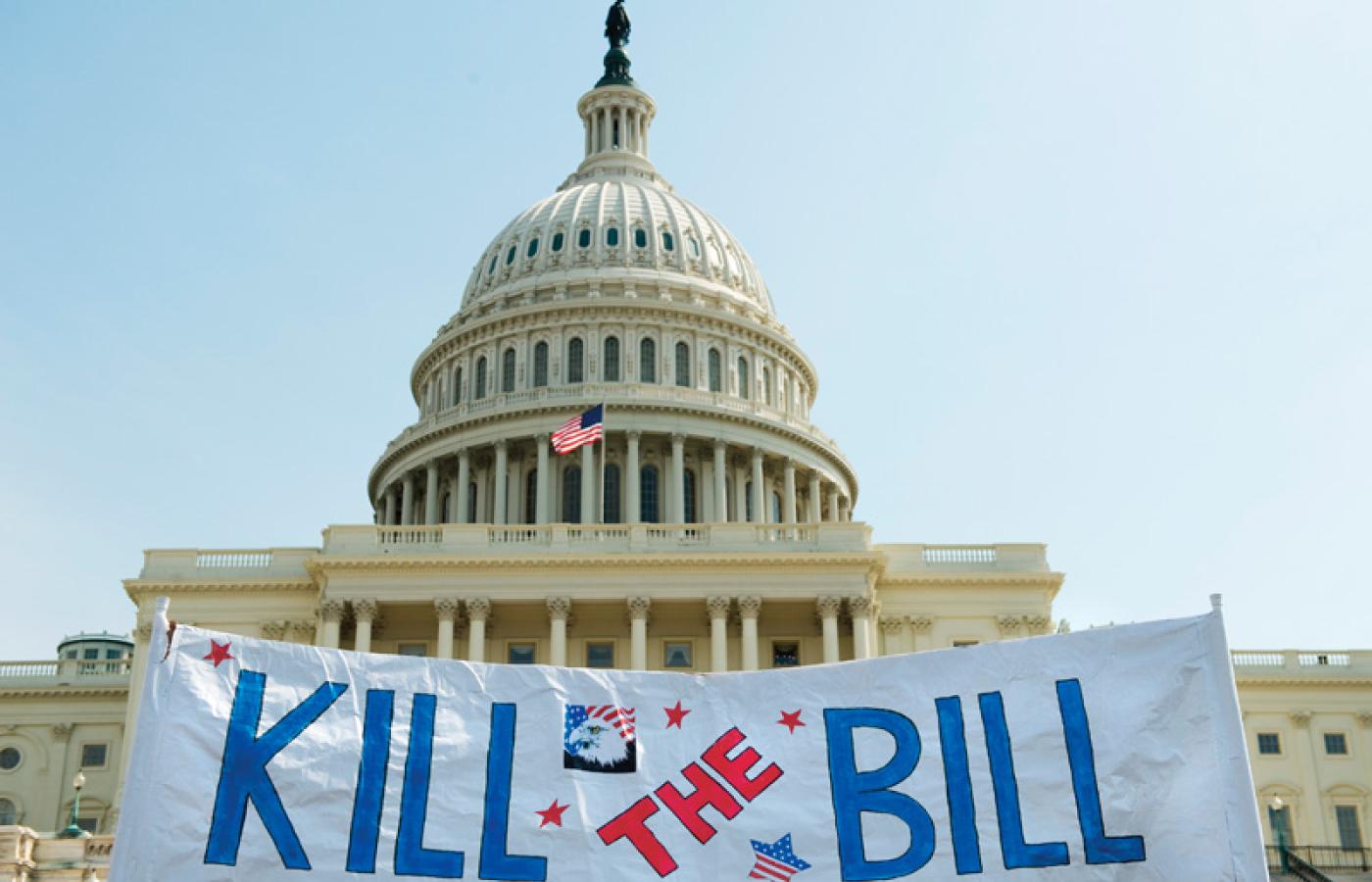 Gdy Obama chciał przeforsować swoją ustawę o opiece zdrowotnej, do Waszyngtonu przybyły tysiące zwolenników Tea Party, by demonstrować przeciw tej reformie z transparentami „Kill the Bill” (Utrącić – dosłownie: zabić - ten projekt ustawy). Opluwali oni deputowanych, którzy chcieli głosować za reformą, wyzywali ich od pedałów i czarnuchów. Wielu politykom grożono śmiercią. FBI aresztowało mężczyznę, który wielokrotnie dzwonił z pogróżkami do Nancy Pelosi, spikera Izby Reprezentantów i zdecydowanej zwolenniczki tej reformy.