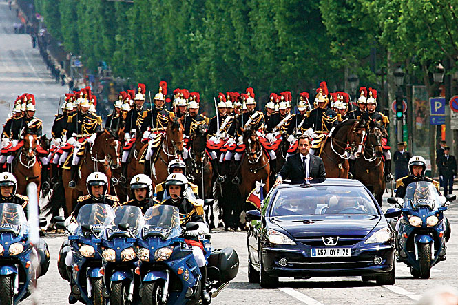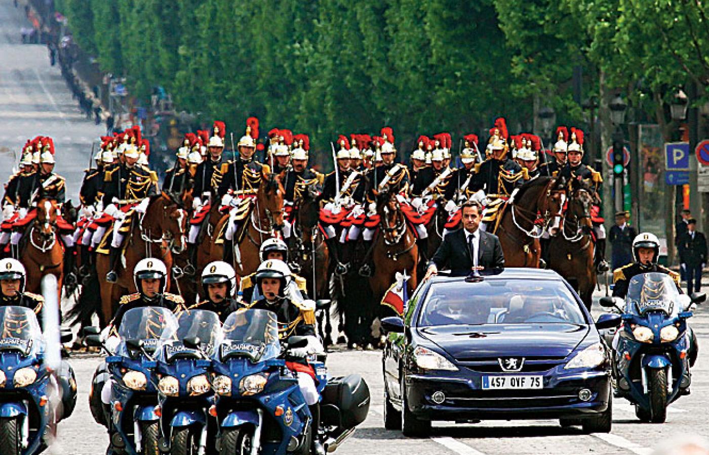 Sarkozy do tradycji powrócił, ale nie pozwolił artylerzystom skończyć kanonady – z natury niecierpliwy, już po ósmym wystrzale rozpoczął swoje przemówienie. Potem odebrał honory wojskowe w ogrodach Pałacu Elizejskiego, a po obiedzie pojechał pod Łuk Triumfalny, by zapalić znicz na grobie nieznanego żołnierza, po drodze pozdrawiając Francuzów zgromadzonych wzdłuż trasy. Pozaprotokolarnym akcentem ina-uguracji Sarkozy’ego był publiczny pocałunek w usta od jego ówczesnej żony, która nie brała udziału w kampanii wyborczej, podgrzewając plotki o rozpadzie małżeństwa. Okazały się one prawdziwe – mimo pokazu czułości pięć miesięcy po zaprzysiężeniu francuska para prezydencka wniosła o rozwód, a miejsce u boku Sarkozy’ego błyskawicznie zajęła inna była modelka Carla Bruni.