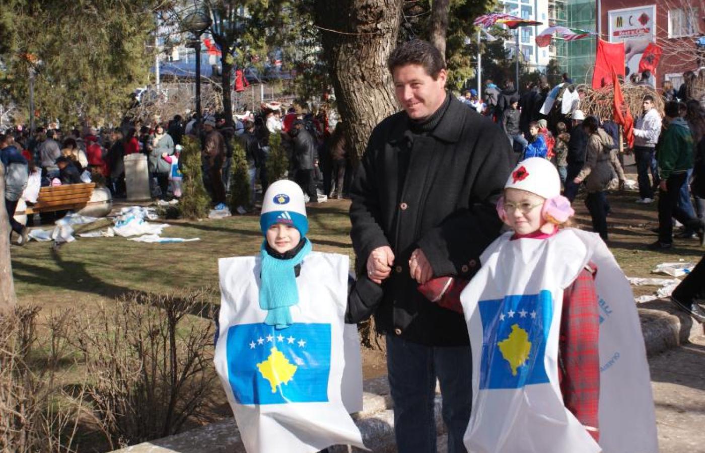 W Pei/Peciu nawet sklep United Colors of Benetton eksponuje dwa kolory: czerwony tła i czarny albańskiego orła; podobnie sklep z ubrankami dla niemowląt. Nawet dzieciaki gonią w T-shirtach z motywami albańskiej albo kosowskiej flagi.