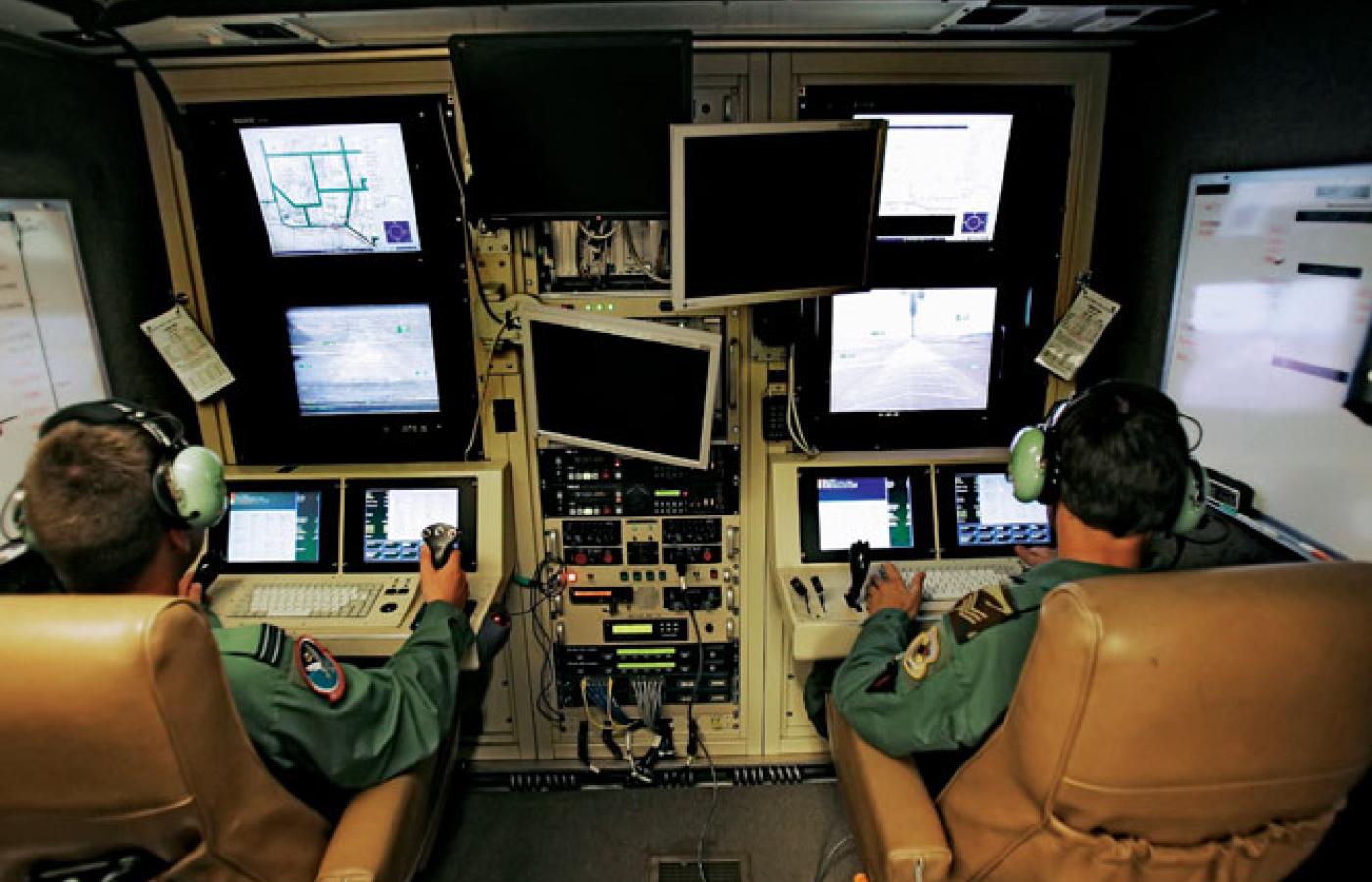 Ruchome centrum dowodzenia mieści się w klimatyzowanych kontenerach przy nieużywanym już pasie startowym. Zdalne sterowanie jest możliwe dzięki specjalnej autostradzie teleinformatycznej: z Afganistanu sygnał biegnie przez satelitę do Europy, światłowodem po dnie Atlantyku i dalej do bazy pilotującej, Pentagonu i w drugą stronę do dowódcy polowego na miejscu akcji w Afganistanie. Mimo odległości 20 tys. km, opóźnienie między dżojstikiem a lotką nie przekracza 2 sek. Oprócz pilota maszynę obsługuje jeszcze specjalista od wizji, który śledzi obraz z kamer. W Reaperach rozdzielczość jest tak wysoka, że pilot może odczytać tablicę rejestracyjną z odległości 3 km, a kamery termowizyjne pozwalają ocenić, czy broń w ręku człowieka na ekranie była niedawno używana.