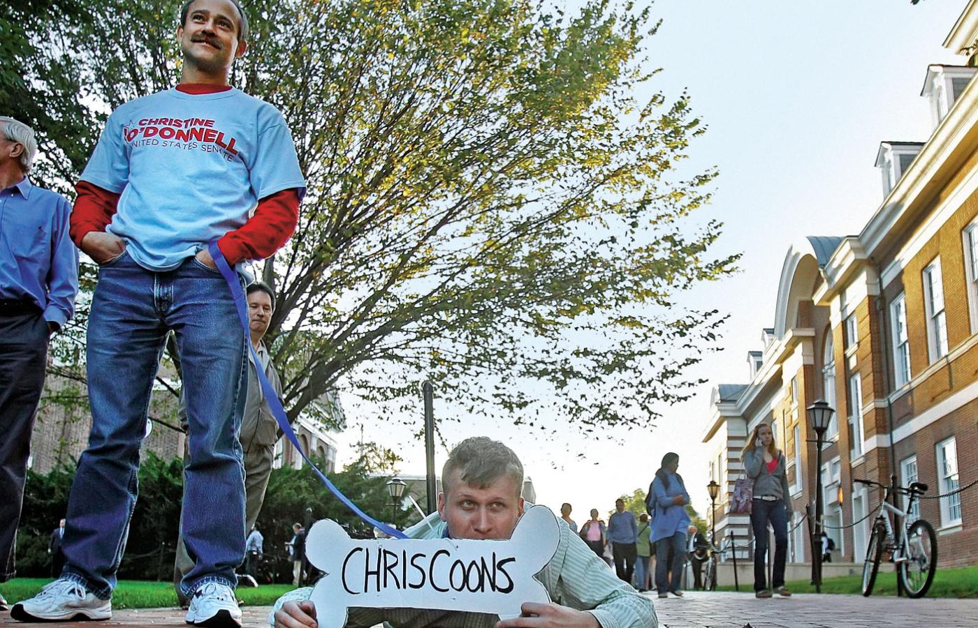 Uniwersytet Delaware dawno nie był tak rozpolitykowany. Za Chrisem Coonsem, kandydatem demokratów do Senatu USA, agitują studenci w szpiczastych kapeluszach i szatach czarowników z napisami: „Głosuj na Christine”. Szydzą z jego republikańskiej rywalki Christine O’Donnell, która wyznała, że próbowała czarów. Jej fani nie pozostają dłużni – jeden z nich, jako pies w masce Coonsa, pełza po ziemi, prowadzony na smyczy przez lidera  demokratów w Senacie Harry’ego Reida. Obie grupy skandują hasła, przekrzykują się i obrzucają wyzwiskami. To przygrywka do debaty telewizyjnej na uczelni. O’Donnell, dziewczęca, z uśmiechem gwiazdy filmowej, przybywa oblężona przez paparazzich. Na Coonsa, niskiego, łysawego czterdziestoparolatka nikt nie zwraca uwagi.
