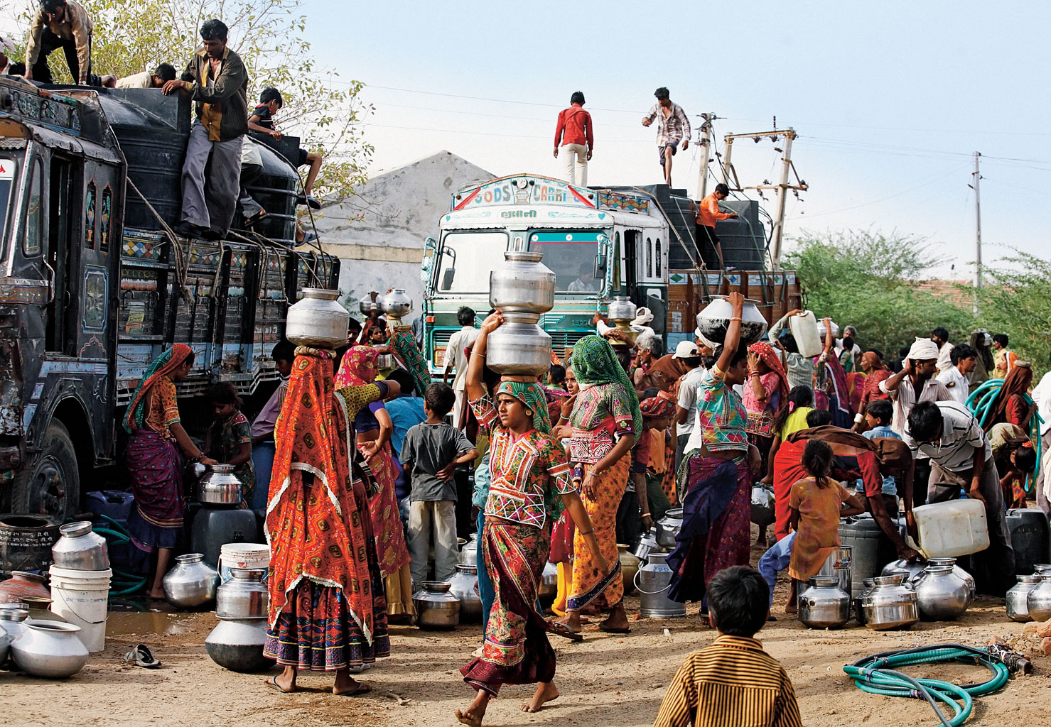 Niektóre z kobiet muszą wstać przed świtem, żeby ustawić się do kolejki: dla tych, co się spóźnią, wody może zabraknąć. Te, które mieszkają poza miastem, muszą czasem przejść nawet 20 km do najbliższego źródła wody pitnej. Nic dziwnego, że zapewnienie wody dla rodziny pochłania kobietom czasem niemal cały dzień. Wiele dziewcząt musi z tego powodu zrezygnować ze szkoły. W slumsach Delhi publiczne krany zapewniają mieszkańcom tylko jakieś 15–18 l wody na osobę na dzień. Według ONZ absolutne minimum, aby człowiek mógł przetrwać, to 20 l dziennie – inaczej skazuje się na bród i choroby.