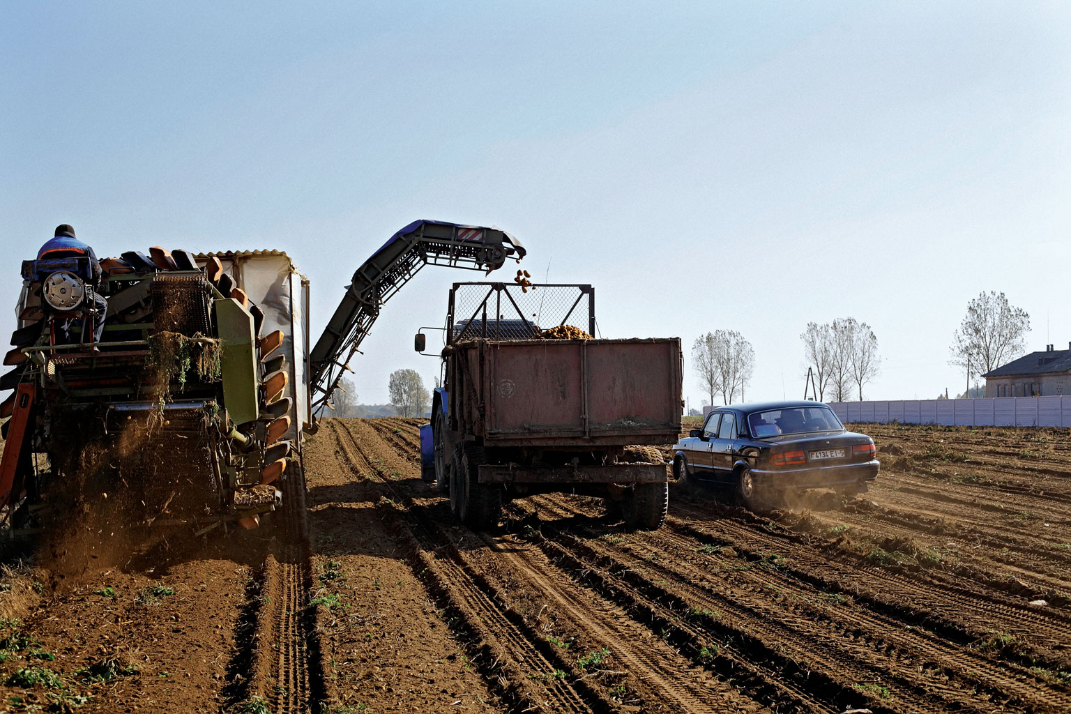 Andrej Aszewski, absolwent Instytutu Rolnego w Grodnie, od 12 lat związany jest ze Staritsą. W trakcie wycieczki przedstawia kolejnych traktorzystów, zasady pracy kombajnów ziemniaczanych, wyniki udojów, ubojów, prezentuje kiszonki na zimę i silosy z Polski. Na pierwszy rzut oka wygląda, że to, co w Kobyłowce robią maszyny, w Staritsie wykonują ludzkie ręce. Dwóch mężczyzn wrzuca 30-kilowe worki na palety, które zaraz trafiają do wielkiego tira. Jeszcze dziś kilka ciężarówek zawiezie kartofle do dotkniętego suszą Kazania. Jeszcze tej jesieni ziemniaki z pól Staritsy będą zjadane przez mieszkańców Moskwy i Petersburga. W Mińsku trafią do supermarketów, restauracji i szkolnych stołówek.