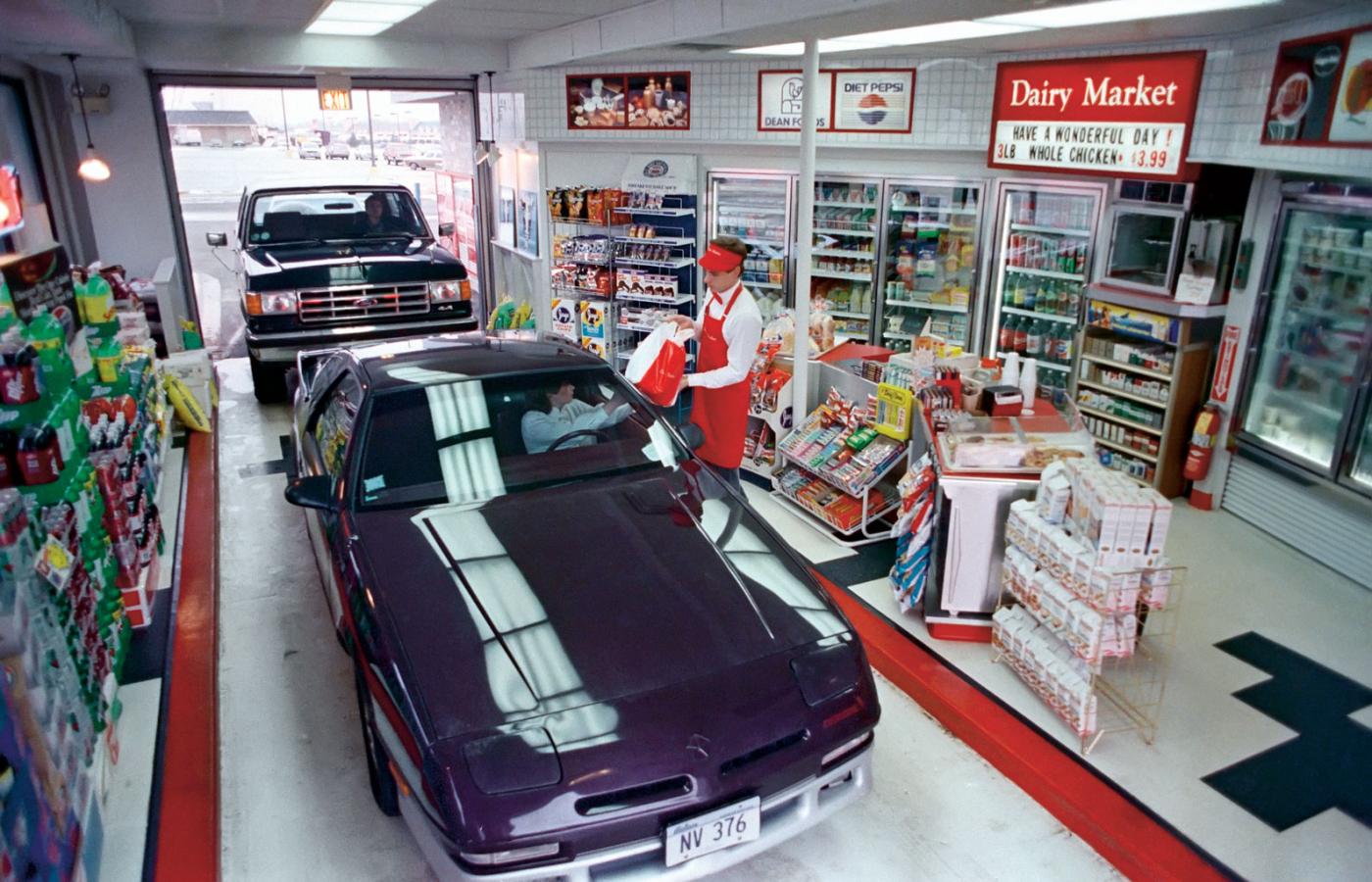 Nie ruszając się zza kierownicy można załatwić mnóstwo innych spraw – w McDonaldzie kupić hamburgery, w banku wybrać gotówkę z bankomatu, na poczcie wrzucić listy do wystawionej na zewnątrz skrzynki. W Pensylwanii działa klub striptizowy dla zmotoryzowanych, gdzie za 5 dol. oglądają oni z wozów rozbierające się dziewczyny. Nie opuszczając auta można nawet zawrzeć małżeństwo – w Las Vegas, w kaplicy Wedding Window, dyżurny pastor w okienku udziela ślubu parom podjeżdżającym samochodami z otwartym dachem. Nawet na pogrzeb znaleziono sposób: w Chicago i Luizjanie powstały domy pogrzebowe, gdzie na leżącego w otwartej trumnie zmarłego można popatrzeć przez otwarte okno jadąc autem.