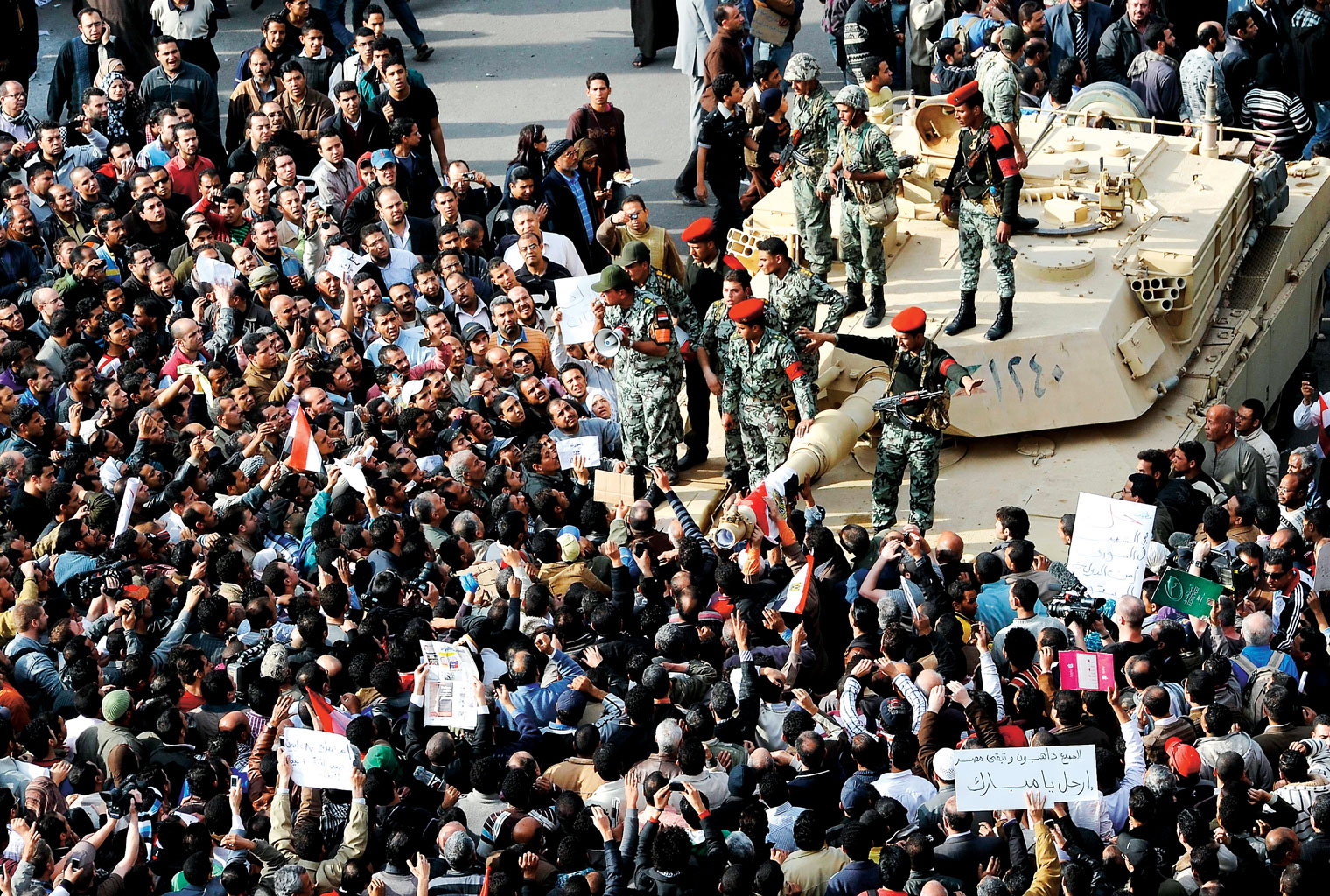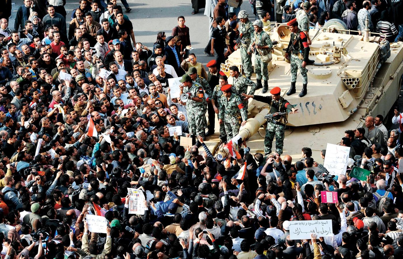 Wozy opancerzone stały na ulicach Kairu przez cały weekend, wojsko nie tłumiło jednak demonstracji. W niedzielę Hosni Mubarak odwiedził sztab generalny, by pokazać, że armia jest po jego stronie, ale ta jest podzielona. Podczas gdy stara gwardia trzyma z prezydentem, młodsi oficerowie widzą, że reżim chyli się ku upadkowi i woleliby znaleźć się po stronie zwycięzców. Od tego, kto wygra próbę sił w armii, zależy dalszy los egipskiej rewolucji. W grę wchodzą trzy scenariusze: