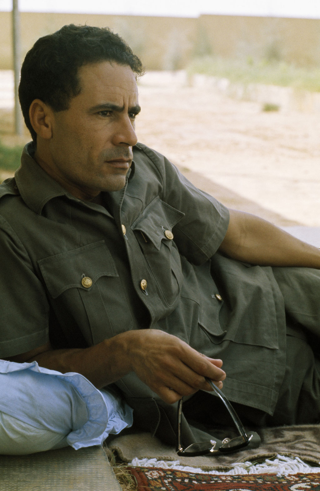 W świecie arabskim Kadafi był traktowany jako przywódca niepoważny, a w Afryce z hipokryzją, bo tam liczono na jego pomoc finansową. Zachód i Azja patrzyły na niego z ciekawością właściwą ekscentrycznemu liderowi trzeciego producenta ropy naftowej w Afryce: otoczony gwardią osobistą złożoną z kobiet, nocował w słynnym namiocie, który rozbijał najczęściej na terenie libijskiej ambasady, ale i pod Kremlem, odziewał się w beduińskie szaty z wielbłądziej wełny, pijał codziennie wielbłądzie mleko (dlatego wszędzie woził ze sobą wielbłądy). To oczywiście budziło zaciekawienie, ale powierzchowne.