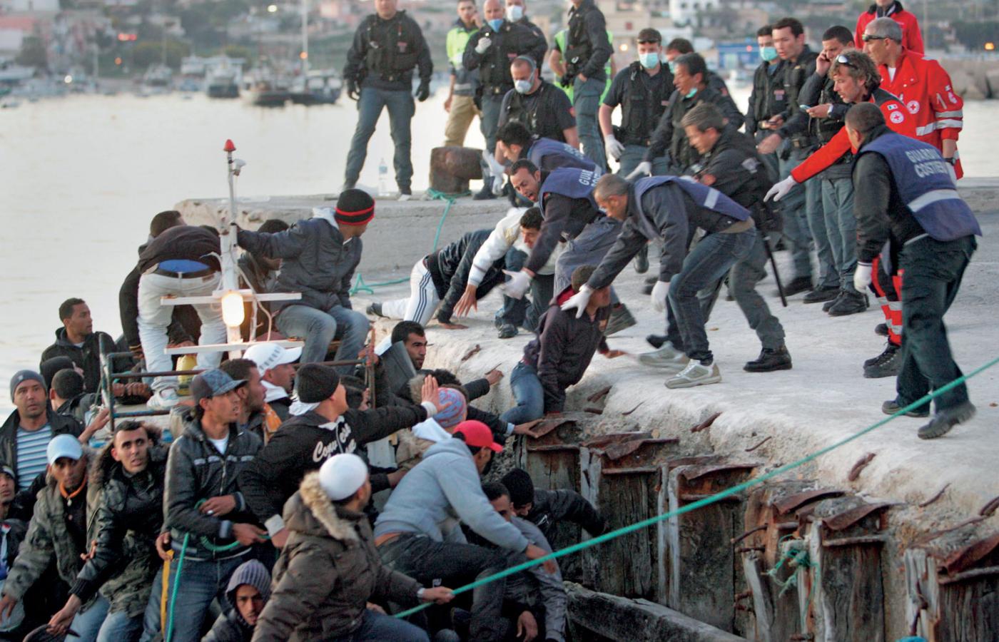 Ponad 90 proc. przybyszy to młodzi Tunezyjczycy. Część z nich została wypchnięta z kraju przez tunezyjską rewoltę: gospodarka stanęła i stracili pracę. Część, wykorzystując polityczny zamęt, ruszyła na podbój Europy w poszukiwaniu lepszego życia. Paradoksalnie ich pech polega na tym, że reżim Ben Alego upadł. W ojczyźnie ich życiu nic nie zagraża, nie grożą im też prześladowania, więc nie przysługuje im azyl. Dotarli na Lampedusę tylko dlatego, że pomoc na morzu przysługuje każdemu, podobnie jak prawo złożenia wniosku o status uchodźcy, którego zresztą żaden Tunezyjczyk nie złożył. Tylko dlatego włoska straż przybrzeżna bierze desperatów na pokład lub eskortuje na Lampedusę. Obowiązek goszczenia przybyszy według unijnych przepisów w takiej sytuacji spada wyłącznie na Włochy.