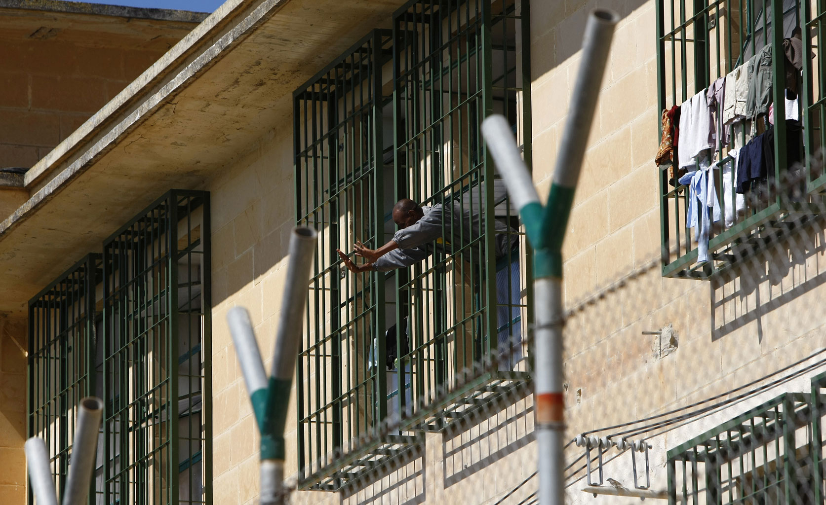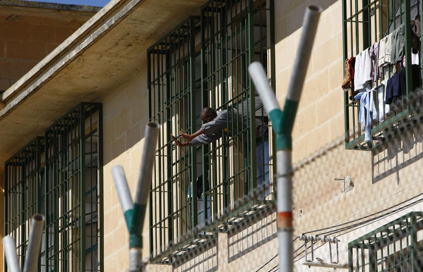 Obozowy budynek jest duży, z żółtawego maltańskiego wapienia. Wszystkie okna za kratami, a wąski spacerownik przed wejściem ogrodzony jest trzymetrową siatką. Gdyby komuś zechciało się po niej wspiąć, miałby jeszcze do pokonania spiralnie skręcony drut kolczasty.