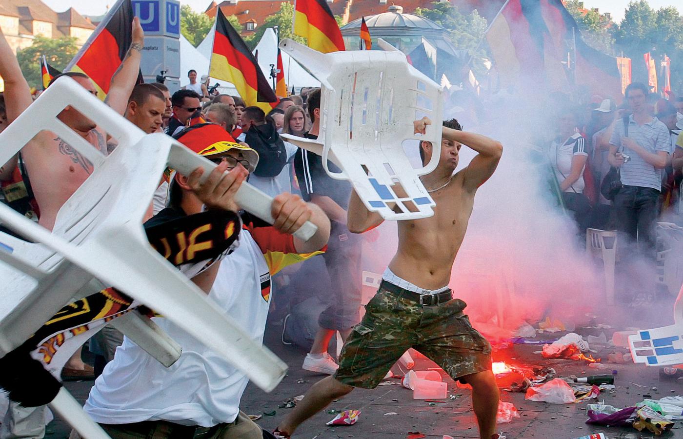 Folklor piłkarski jest w Europie znany od stulecia, już w 1931 r. mówiono o piłkarskiej psychozie. Ale do połowy lat 60. ani prasa, ani policja niezbyt się nim interesowały. Do lat 50. „bitewni turyści” kibicowali swoim drużynom, które wybierano w zależności od miejsca zamieszkania i warstwy społecznej. Klub tworzył społeczny biotop w rodzinnej atmosferze. Od połowy lat 50. – wraz z profesjonalizacją piłki i zamianą superligi w show-biznes – powstały dwa typy fanów. Z jednej strony wybredny konsument, który chce oglądać dobrą piłkę, ale nie jest związany z klubem. Z drugiej członkowie fanklubów – ubrani w szaliki, czapki, emblematy – tworzący na stadionie atmosferę karnawału i plemiennych wojen, które od lat 70. w wielu krajach zmieniały się w orgię zniszczenia i przemocy. To oni są odpowiedzialni za trzecie połowy meczów rozgrywane na trybunach, ale najczęściej poza nimi.