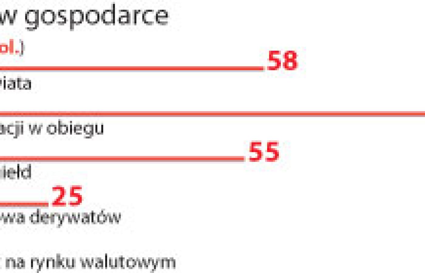 Największym z rynków jest foreign exchange, w skrócie forex, po polsku rynek walutowy. Handel walutami trwa dzień i noc, pięć dni w tygodniu. Dzienny obrót na foreksie wyniósł w ubiegłym roku aż 4 bln dol. i był o 20 proc. wyższy niż trzy lata wcześniej. W samym Londynie, pierwszym ośrodku handlu walutowego, roczne obroty sięgają dwukrotności PKB Wielkiej Brytanii. To na foreksie tydzień przed obniżką ratingu USA można było wyczytać zapowiedź późniejszych wstrząsów: frank gwałtownie drożał, w miarę jak tłum graczy próbował kupić najbezpieczniejszą walutę świata, by zaparkować kapitał na czas zawieruchy.