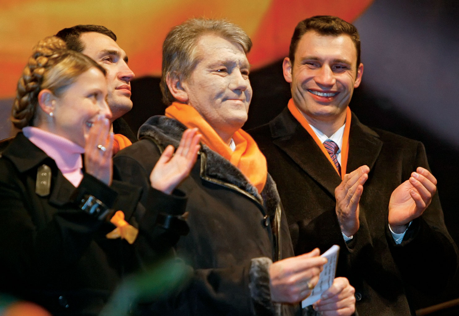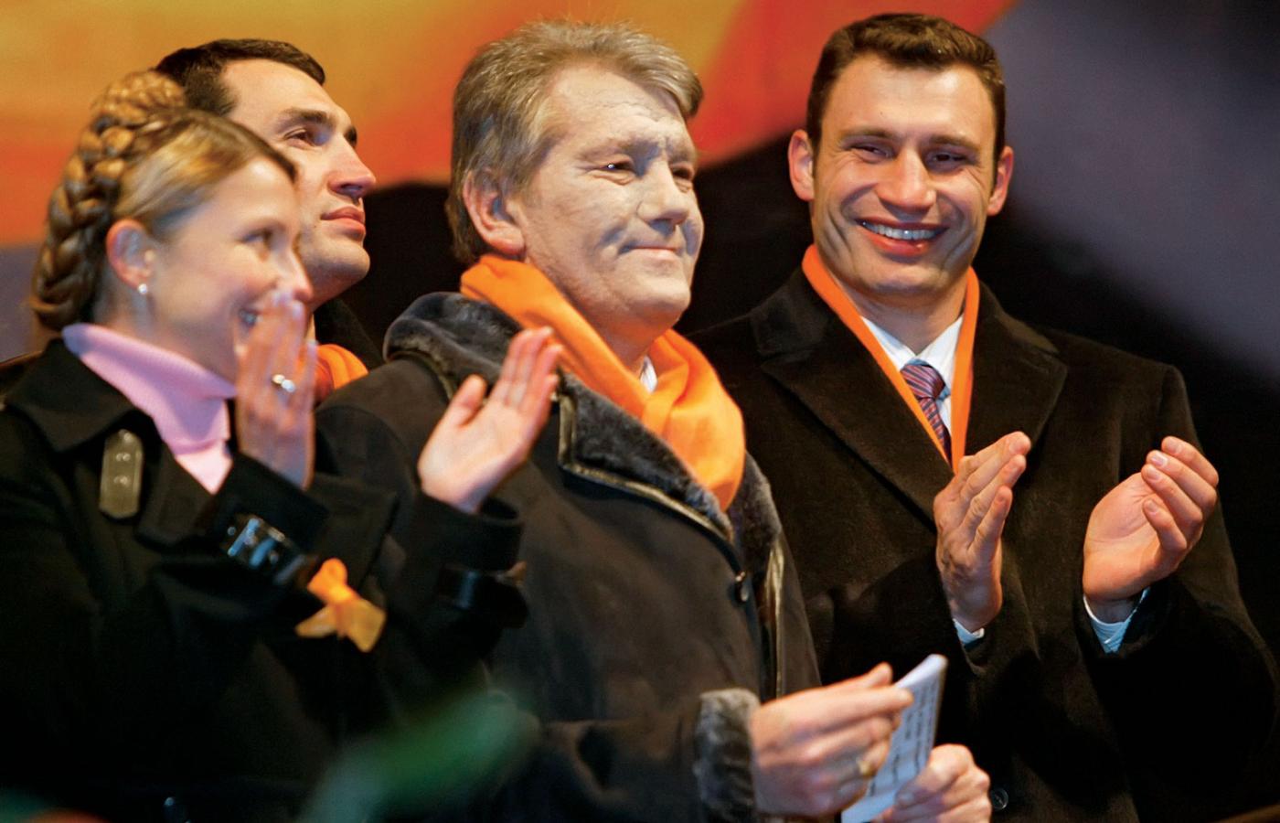 Wszedł do niej, gdy odwiesił rękawice i ogłosił sportową emeryturę. Był rok 2004. Ukraińcy wyszli na kijowski Majdan Niezależności, triumfowała pomarańczowa rewolucja. Witalij i jego brat Władimir poparli pomarańczowych i Wiktora Juszczenkę. – Poparli demokratyczne przemiany bardziej niż konkretne osoby – precyzuje dziś Walerij Karpuncow, radny z Bloku Kliczki, jego prawnik i zaufany doradca. Mówiąc wprost: Kliczko rozczarował się zachowaniem pomarańczowych liderów, zwłaszcza zaniechaniem reform gospodarczych i politycznych. Ale nie zmienił poglądów. Jak mówi Karpuncow, one zawsze były proukraińskie i demokratyczne, europejskie.