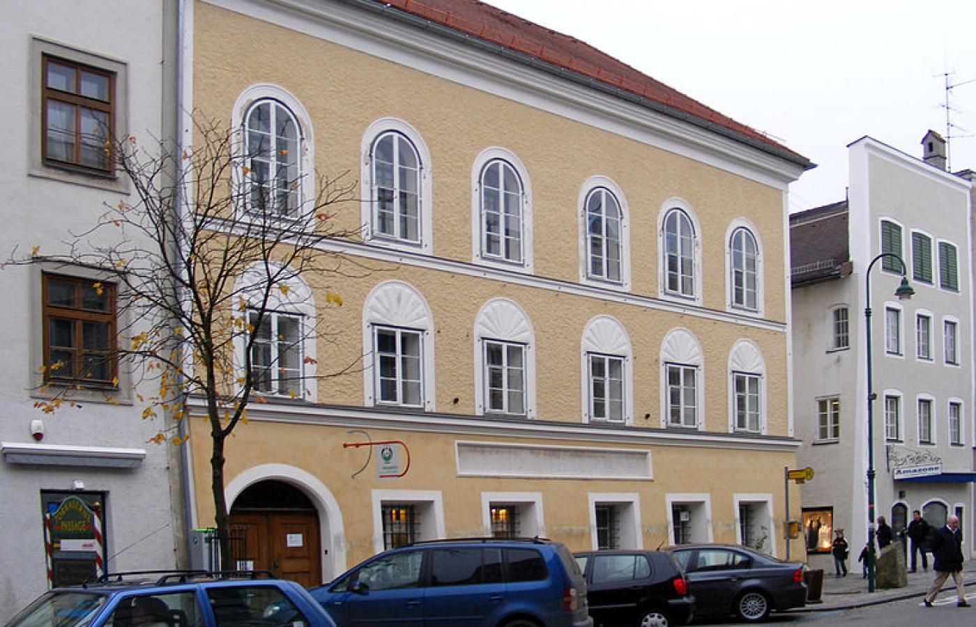 Sto dwadzieścia lat temu dom ten nosił jeszcze nazwę „Gasthof zum Pommer”. Na dole znajdował się zajazd, a na górze - mieszkania. W jednym z nich, w wielką sobotę 20 kwietnia 1889 roku – a był to dzień pochmurny i chłodny – o wpół do siódmej wieczorem przyszedł na świat Adolf Hitler. Mówi się, ze urodził się w narożnym pokoju na drugim piętrze. Po wojnie w budynku mieściła się biblioteka i szkoła, później zaś - w maju 1977 roku - urządzono tam warsztaty dla niepełnosprawnych fizycznie i umysłowo.
